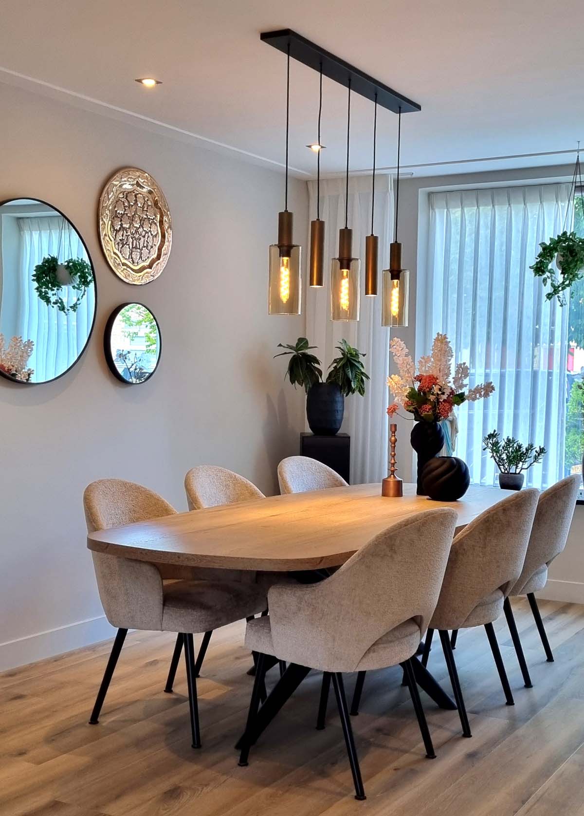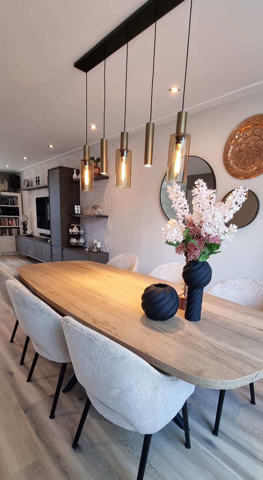 We hebben weer een mooi interieur mogen maken voor een van onze klanten. Deze keer een interieur met comfort en stijl. Er is gekozen voor hoekbank Lotus Plus. Een comfortabele hoekbank uitgevoerd met de stof Dream. Een mooie combinatie met Karpet Lagio mix in de kleur 16 en fauteuil Livorno maakt het helemaal compleet. Wandmeubel Aurora is een echte blikvanger in het interieur. De eetkamer hebben wij ook samengesteld met eettafel Oltia in de kleur natur. De eetkamerstoelen Lesly zorgen voor een comfortabel en stijlvol plaatje. Wil je ook graag een mooie nieuw inrichting? Wij staan voor je klaar!