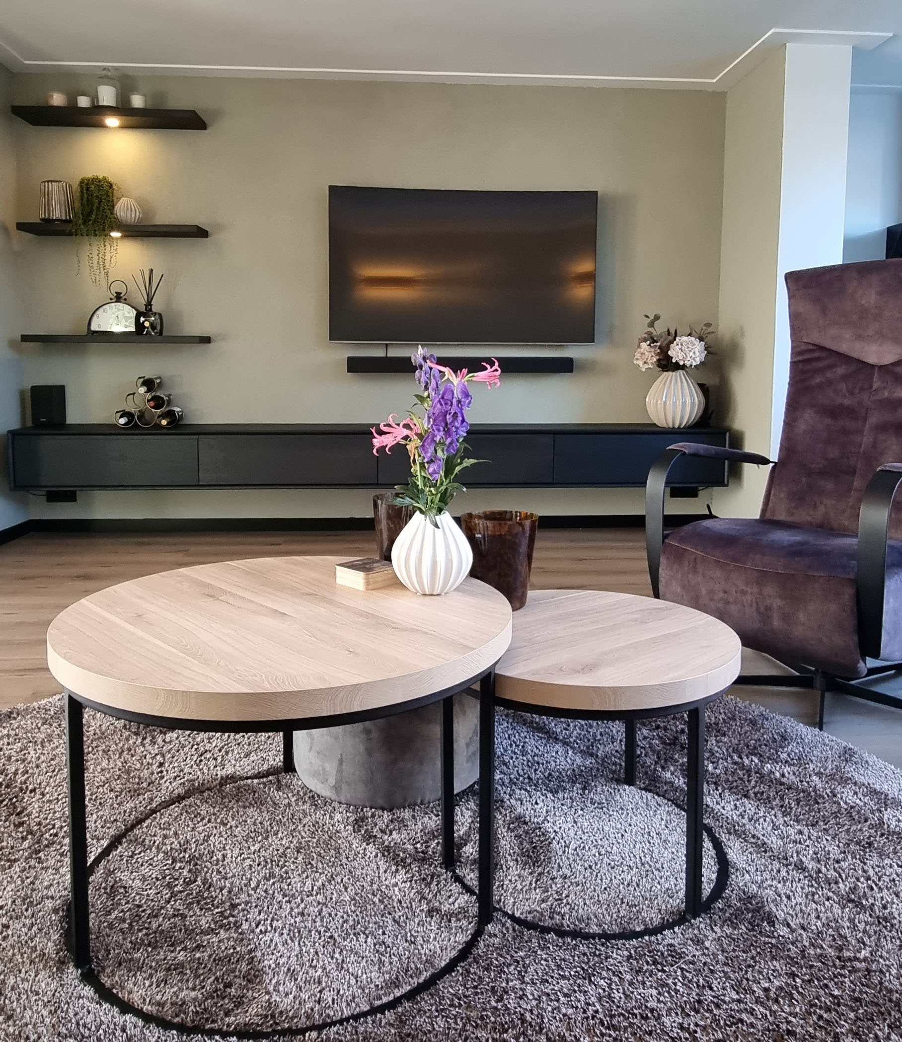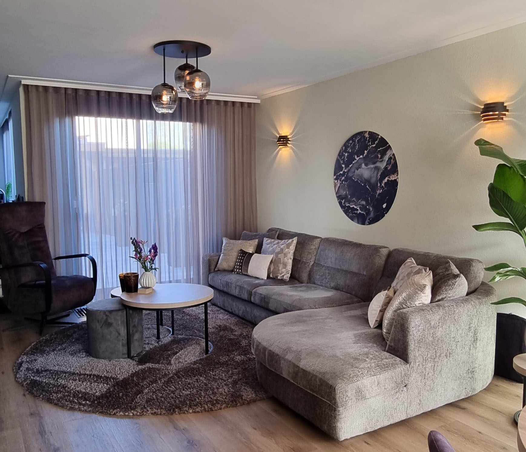 Wij hebben weer een van onze klanten blij mogen maken met een complete nieuwe inrichting. Er is gekozen voor een rustige uitstraling met natuurlijke kleuren. Een heerlijk comfortabele bank en robuuste wandkasten, gecombineerd met relaxfauteuil Seduto voor een heerlijke plek om te genieten. Ook de prachtige plafondlamp is door Tase Wonen & Slapen geleverd. Kies voor lampenserie Fantasy met heel veel mogelijkheden. Kom snel naar onze showroom en laat onze interieurstylisten je helpen bij je keuze voor een nieuw interieur.