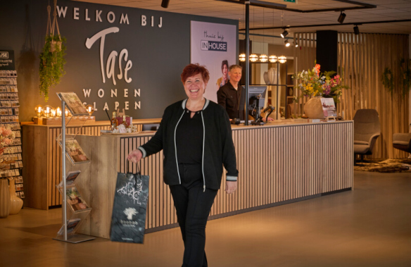 Sinds de opening van het nieuwe pand in 2003 is er veel gebeurd binnen Tase Wonen & Slapen. Met de toevoeging van Pronto Wonen, de moderne lifestyle- en meeneemformule op de bovenverdieping, is er een enorme verbreding van het assortiment beschikbaar gekomen. Ook werd afscheid genomen van de 'shop-in-shop' formule Woninginrichting aanhuis.nl. Hiervoor in de plaats is een sfeervolle verlichtingsafdeling gecreëerd, uniek binnen de regio! Tevens werd de slaapafdeling uitgebreid met meer keuze uit bedden, boxsprings en kasten. Op de benedenverdieping werd een aparte afdeling gemaakt voor alle soorten relaxfauteuils.