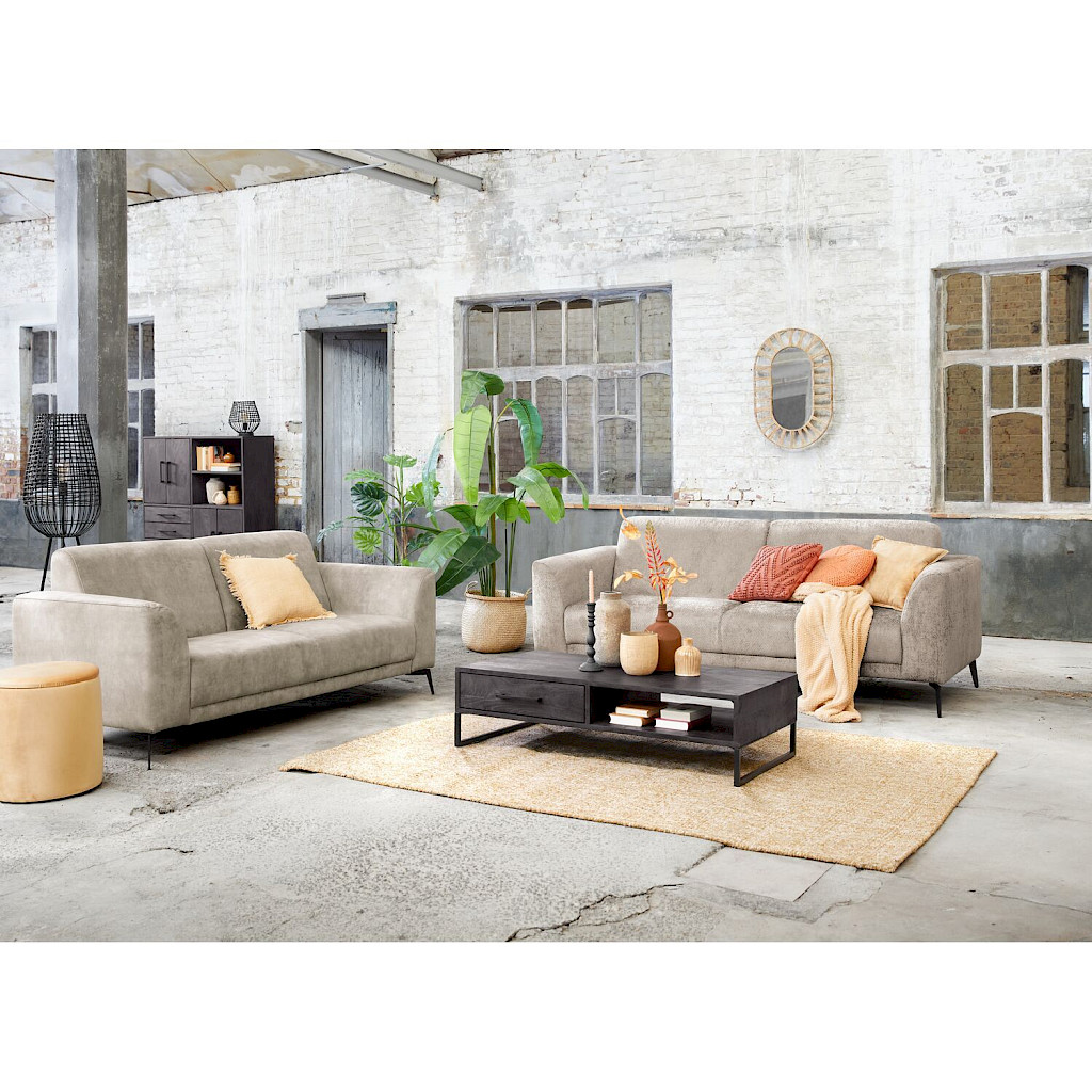De bank is uitgevoerd in een grijsbruine velours stof die zacht en comfortabel aanvoelt. Daarnaast heeft deze stof een zeer luxe en warme uitstraling. De zitting en de rug zijn voorzien van een polyetherschuim. Dit geeft naast een aangenaam gevoel ook een uitstekende ondersteuning bij het stevig voelende zitcomfort. Zo kun je ontspannen genieten, met de wetenschap dat deze bank is ontworpen met een maximale belasting van 120 kg per zitting.