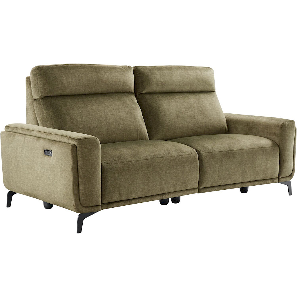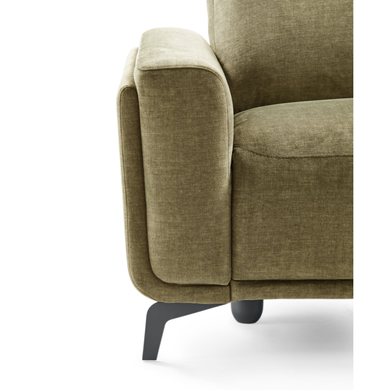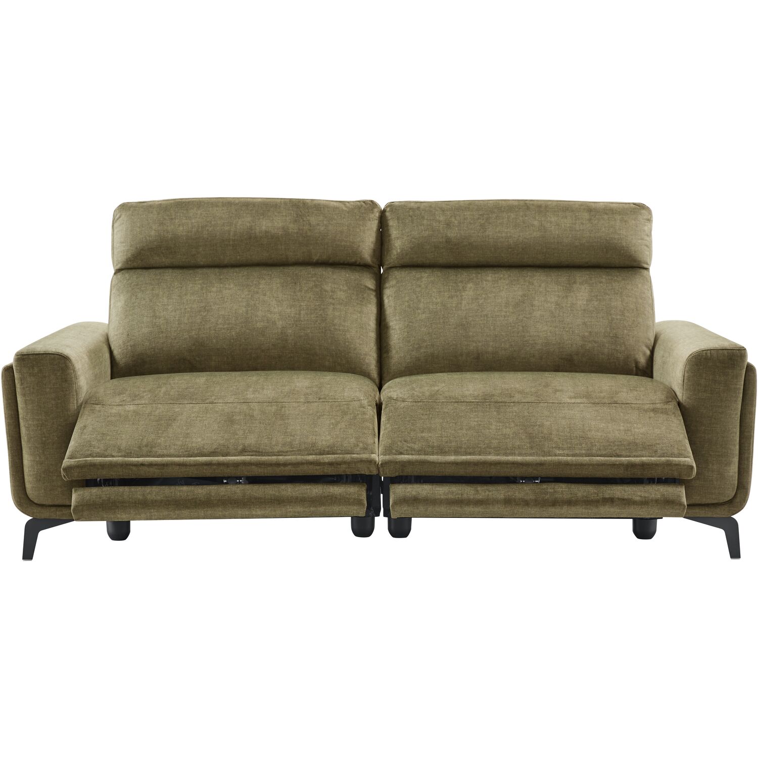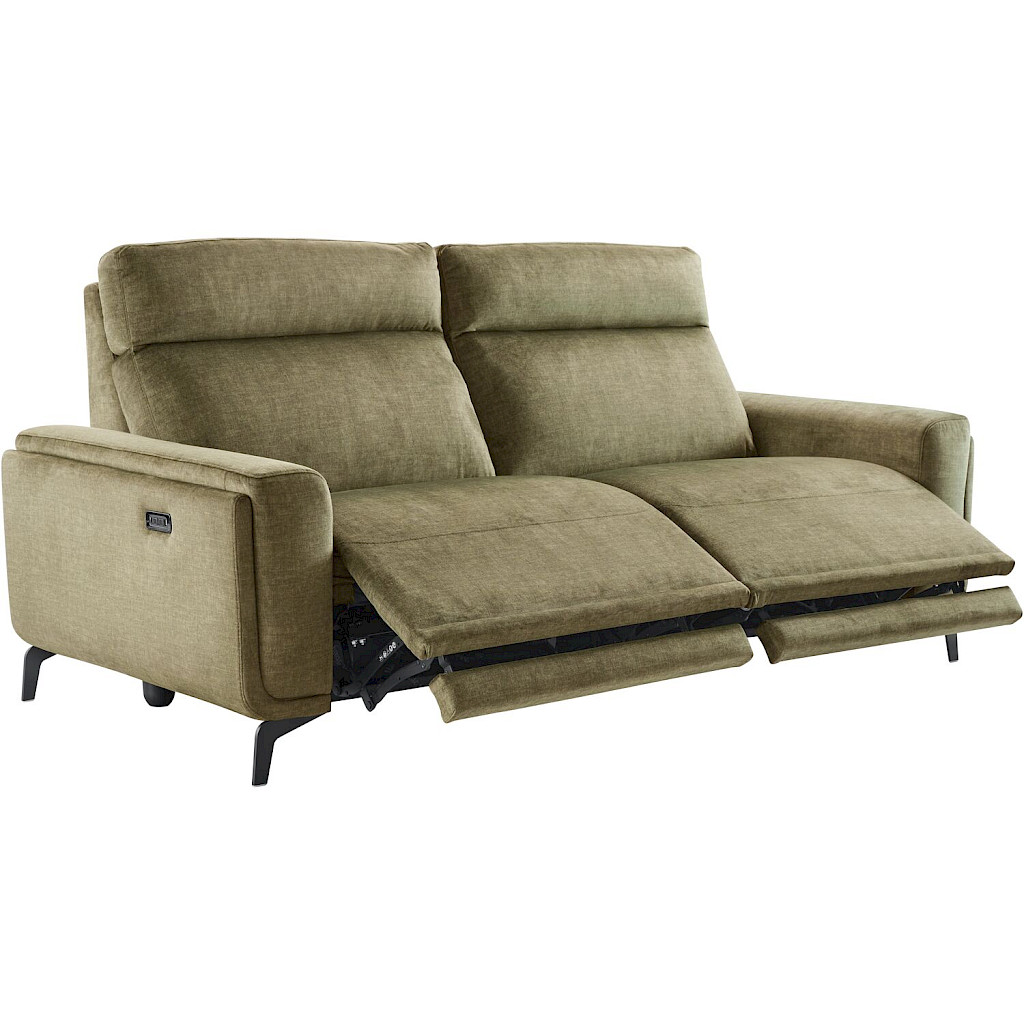 Deze 3-zitsbank is uitgevoerd in luxe veloursstof met zwart metalen poten. Beide zittingen hebben een elektrische relaxfunctie, die met tiptoetsen aan de zijkant bedienbaar zijn. Indien gewenst, kun je ook voor drie andere kleuren poten kiezen. Qua bekleding kun je kiezen uit vele soorten stof en leer.