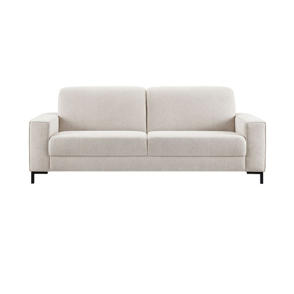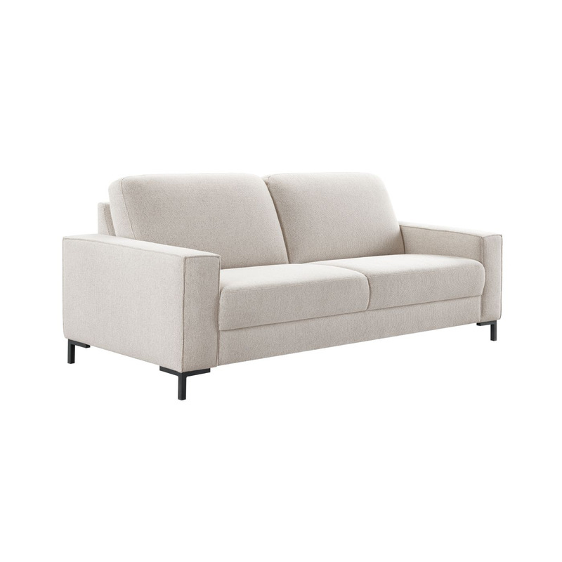 Uitgevoerd in stof sneak 01-naturel met arm C, HR-schuim in de zitting en zwart metalen poten type MF1, hoogte 12 cm.