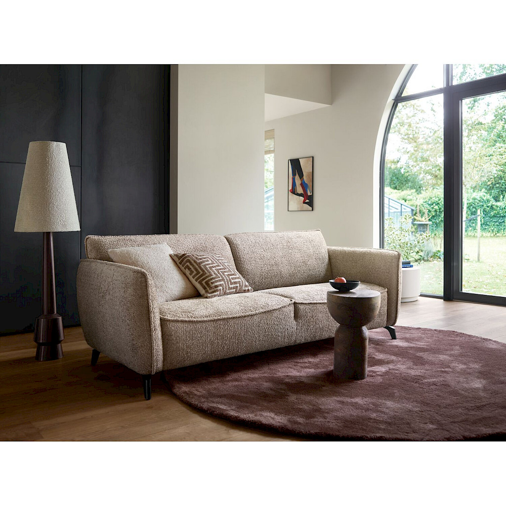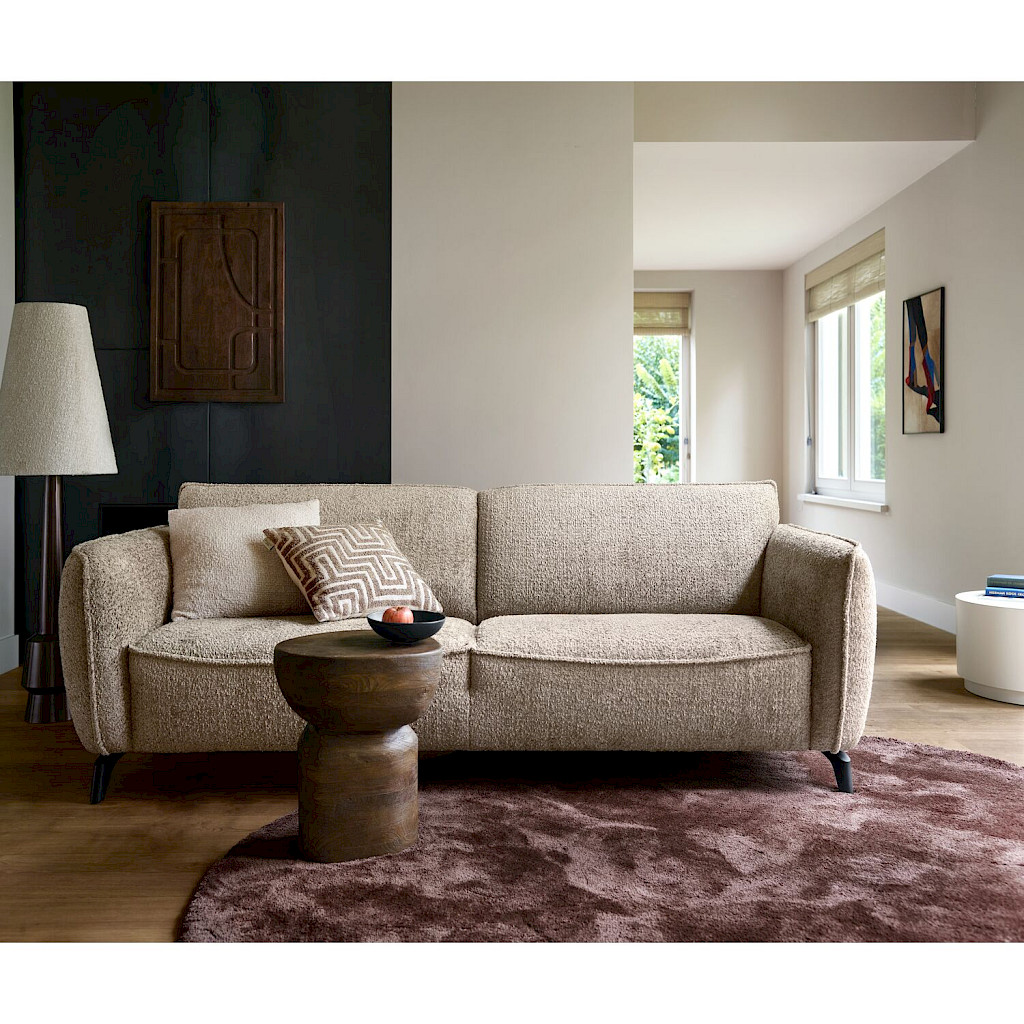 3-Zitsbank Salanti heeft een modern en eigentijds uiterlijk en biedt een heerlijk zitcomfort. Salanti is uitgevoerd in een mooie grove bouclé stof en voelt daarom zijdezacht aan. De zwarte ranke metalen poten en schuine armleuningen geven dit model een geheel eigen karakter.