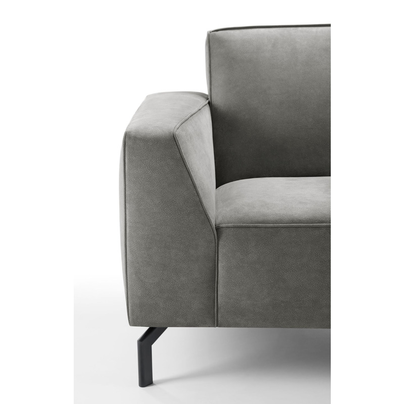 3 zitsbank Virgio is een moderne en comfortabele bank met een robuuste uitstraling. De stiknaden zijn afgewerkt met een fraaie bies. In de zitkussens is er gebruik gemaakt van een stalen nosagvering in combinatie met bonellvering. Een bonellveer heeft een conische vorm en dit geeft meer weerstand en dus ondersteuning bij een hogere belasting. Deze bank is voorzien van afgeschuinde armleuningen en zwarte metalen poten. De bank is gestoffeerd in microleder boxer. Microleder is een samengestelde bekleding van leder en stof met een mooie en luxe uitstraling en makkelijk in onderhoud. Door de geschuurde uitstraling geeft dit de bank een stoere look.