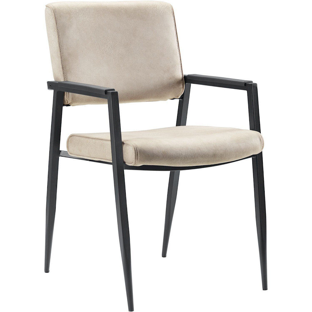 Stoel Jisca is uitgevoerd in een beige microvezelstof met zichtbare nerven. Microvezel is een zachte, onderhoudsvriendelijke stof.