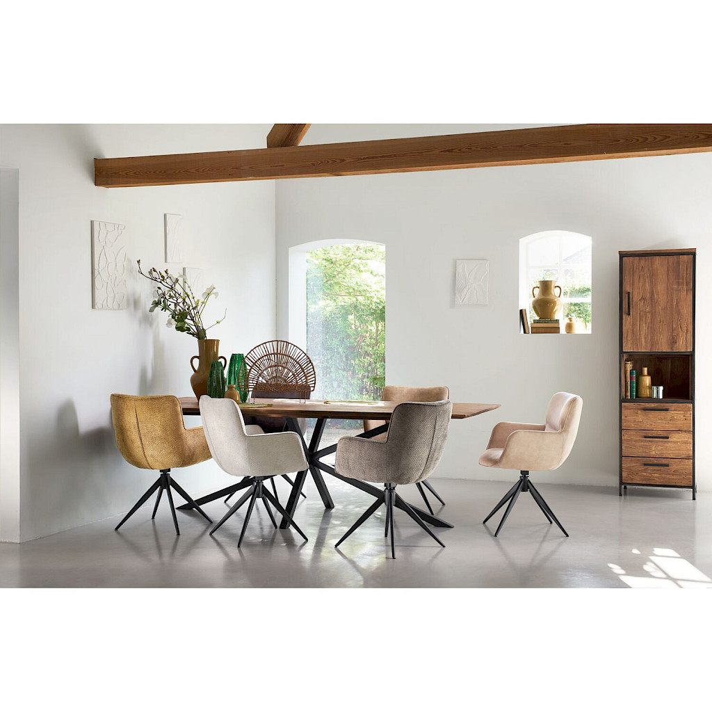 Onderhoudstips: Om de stof mooi te houden, kun je deze inspuiten met een Textile & Leather Protector. Vlekken zijn eenvoudig te verwijderen door vloeistoffen voorzichtig af te deppen met een schoon doekje. Plakvilt onder de poten helpt je vloer beschermen tegen krassen en slijtage.
