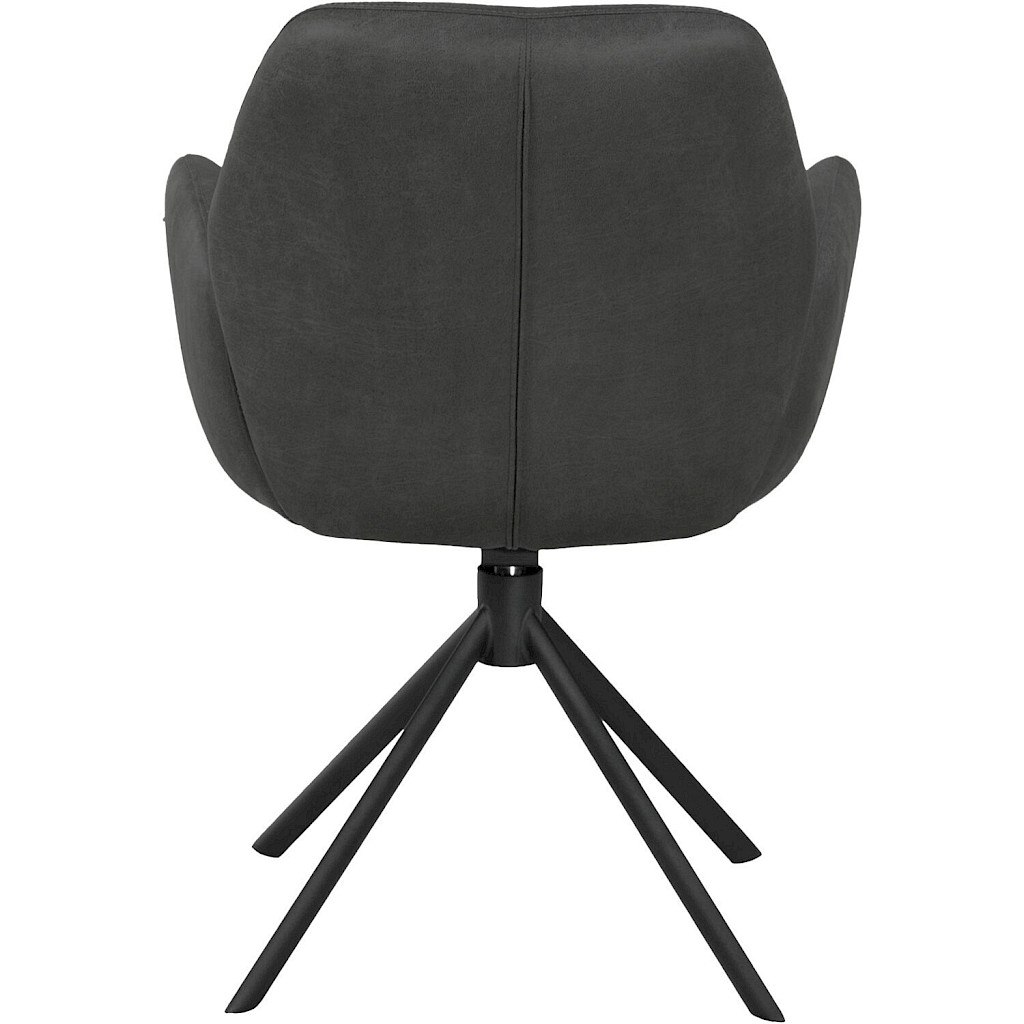 Armstoel Loranzo is uitgevoerd met een zachte microvezelstof in een stijlvolle donkergrijze tint. De stof voelt comfortabel aan, is slijtvast en makkelijk te onderhouden. Een subtiel sierstiksel in de rugleuning en de zwarte metalen draaipoot geven de stoel een moderne, elegante uitstraling. Dankzij de volledig gestoffeerde afwerking past Loranzo perfect in elk interieur.