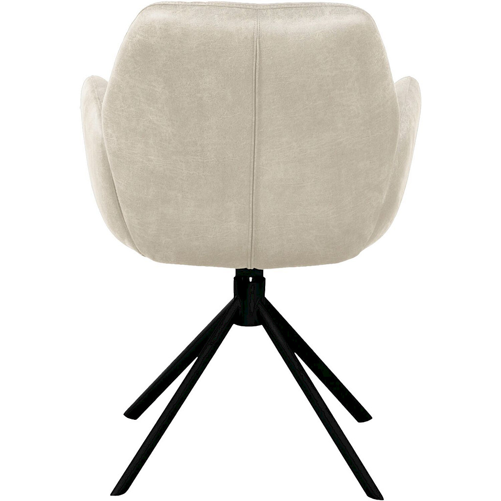 Armstoel Loranzo is uitgevoerd met een zachte microvezelstof in een zacht beigegrijze tint. De stof voelt comfortabel aan, is slijtvast en makkelijk te onderhouden. Een subtiel sierstiksel in de rugleuning en de zwarte metalen draaipoot geven de stoel een moderne, elegante uitstraling. Dankzij de volledig gestoffeerde afwerking past Loranzo perfect in elk interieur.