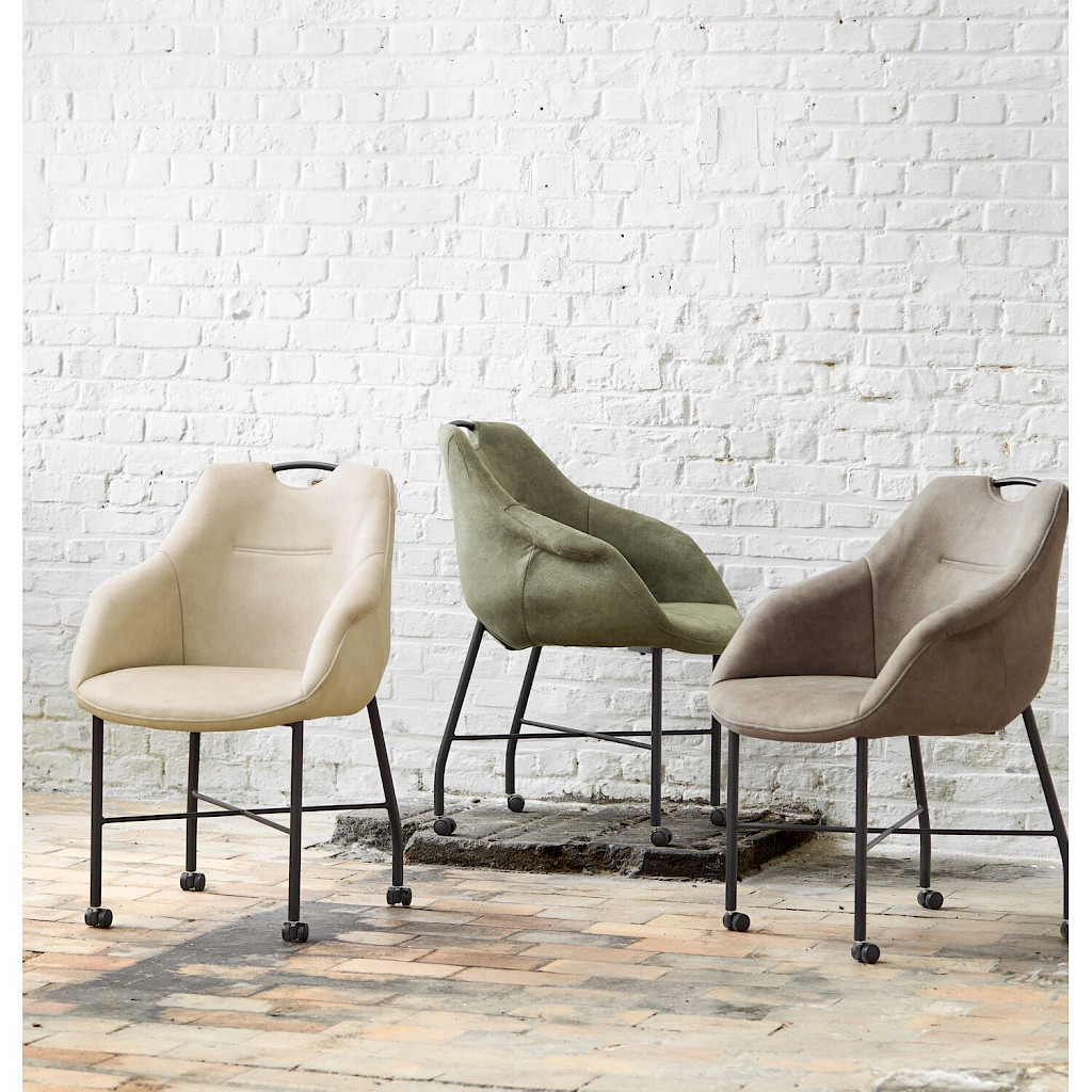 Armstoel Lucide heeft een mooie volle kuip met dikke polyethervulling in de zit- en rugvlakken voor een heerlijk zitcomfort. Deze armstoel heeft zwarte metalen poten met wieltjes zodat je ze eenvoudig kunt verplaatsen. De poten zijn voorzien van een sterke poedercoating waardoor ze tegen een stootje kunnen.