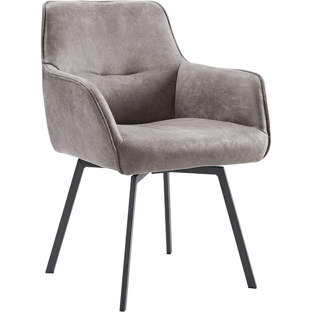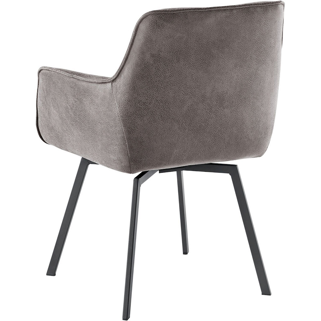 Turelli is een zeer comfortabele armstoel, geschikt voor lange avonden (na)tafelen. De stoel is bekleed met grijs microleder en afgewerkt met een vlindernaad. Microleder is een samengesteld leder: de onderlaag bestaat uit ledervezels, de toplaag is een zachte microvezelstof met een zichtbare leernerf en licht gemêleerd dessin. Het teruggetrokken stiksel in de rugleuning en de zwart metalen poten geven de stoel een stoere uitstraling.