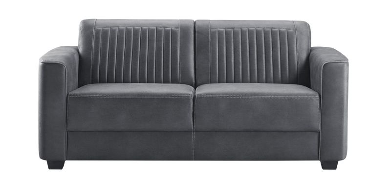 Uitgevoerd in microleder camel lf 44-steel, HR-koudschuim met een toplaag van traagschuim in de zitting, retro rug met polyetherschuim, bies in microleder camel lf 20-stone, contraststiksel grijs en zwarte kunststof poten (6 cm).