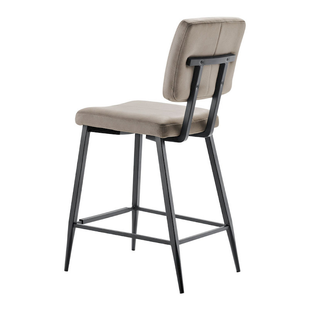 De barkruk is voorzien van polyetherschuim in de zitting en rug, dit zorgt voor een wat steviger zitcomfort. De rugleuning, die door het zwart metalen frame met de zitting verbonden is, loopt iets schuin naar achteren. De poten lopen taps toe naar onderen, waardoor het frame een ranke uitstraling heeft.