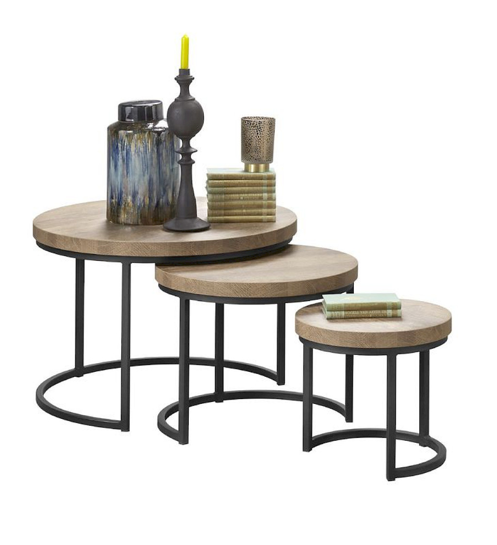 De stoere handgrepen geven de kasten een actuele industriële look mee. De mooie diepe mokkakleur van de kasten en de tafels geven een warme uitstraling aan je interieur. Het diamantpatroon combineert prachtig met de gun metal metalen accenten.
