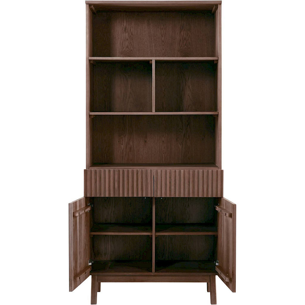 De boekenkast Arrosto uit de gelijknamige woonserie combineert vakmanschap met een verfijnde, eigentijdse stijl. Gemaakt van hoogwaardig eikenhout, straalt dit meubel een tijdloze charme uit die perfect past in eigentijdse interieurs. Verkrijgbaar in de stijlvolle kleuren Light- of Dark Roast, is deze een echte blikvanger in elke ruimte. De verfijnde latjes aan de buitenkant geven de kast een subtiele knipoog naar Scandinavisch design, waardoor het meubel zowel elegant als functioneel is.