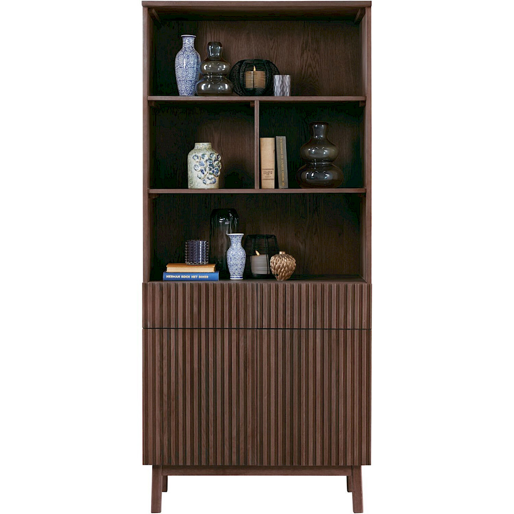 Met een hoogte van 203 cm, breedte van 90 cm en diepte van 45 cm biedt deze boekenkast in de kleur Dark Roast zowel praktische opbergruimte als een stijlvolle uitstraling. De slimme indeling zorgt ervoor dat je spullen netjes en georganiseerd opgeborgen zijn. De laden en deuren zijn voorzien van een push-to-open systeem voor gemakkelijke opening en soft-close technologie, zodat alles altijd zacht en geruisloos sluit. In de open vakken kun je bovendien jouw favoriete accessoires en boeken uitstallen, waarmee je de kast een persoonlijke en decoratieve touch geeft. Of je nu boeken, servies of decoratie wilt opbergen, deze kast biedt de ideale oplossing voor elke kamer. Combineer het met andere meubelen uit de Arrosto woonserie en het Tavolo tafelconcept voor een harmonieuze en complete inrichting