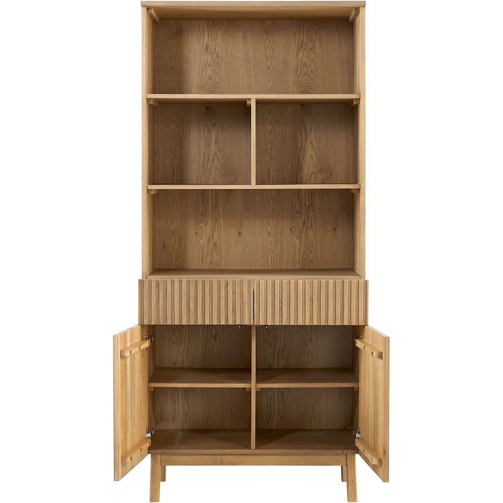 De boekenkast Arrosto uit de gelijknamige woonserie combineert vakmanschap met een verfijnde, eigentijdse stijl. Gemaakt van hoogwaardig eikenhout, straalt dit meubel een tijdloze charme uit die perfect past in eigentijdse interieurs. Verkrijgbaar in de stijlvolle kleuren Light- of Dark Roast, is deze een echte blikvanger in elke ruimte. De verfijnde latjes aan de buitenkant geven de kast een subtiele knipoog naar Scandinavisch design, waardoor het meubel zowel elegant als functioneel is.