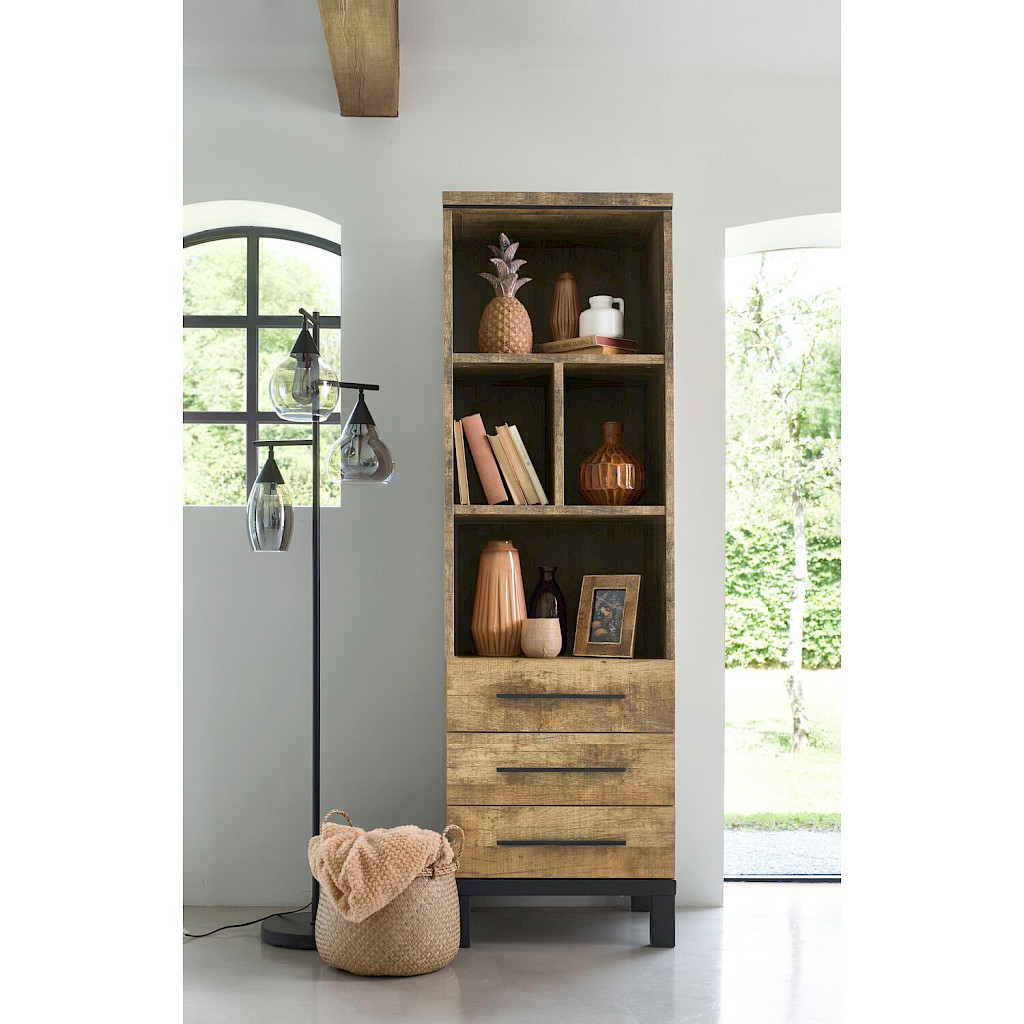 De boekenkast is 58 cm breed en 188 cm hoog en heeft 3 laden en 4 open vakken. Hierdoor kun je er veel spullen in opbergen. De laden zijn voorzien van een softclose systeem, hierdoor sluiten de laden automatisch zachtjes. De kast is goed te combineren met de andere meubelen uit de serie Atrio.