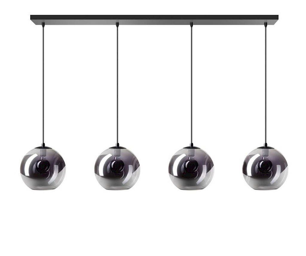 Uitgevoerd in zwart metaal met smoke glas, 4 lichts (hxbxl) max. 130x25x120 cm Excl. lichtbron