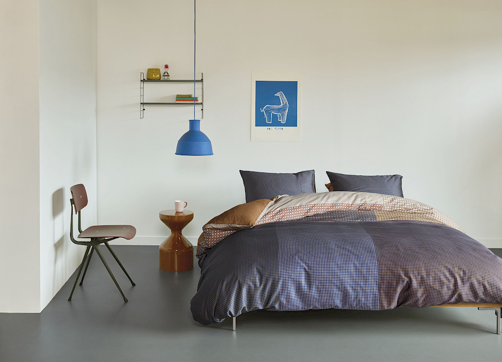 Het Oxford Street dekbedovertrek van Beddinghouse Dutch Design combineert grote rechthoeken, blokken en strepen tot een strak maar speels lijnenspel