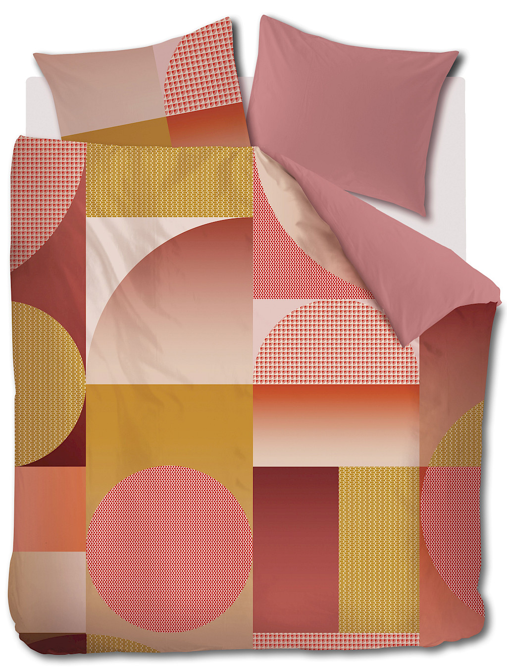 Het Sunset Boulevard dekbedovertrek van Beddinghouse Dutch Design heeft een opvallend ontwerp met cirkels, geometrische vlakken en textuurpatronen