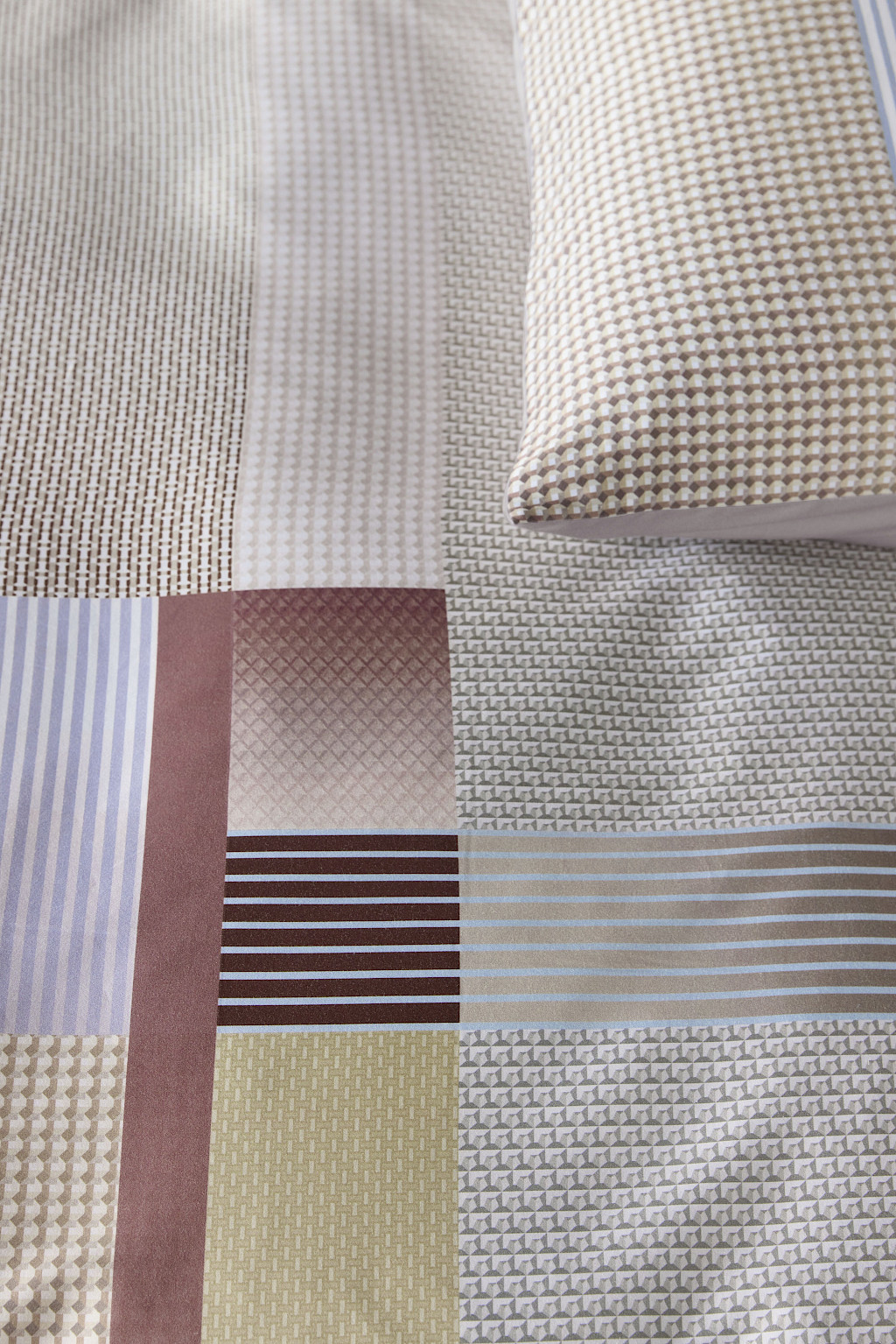 Overtrek Ferruccio van Kardol by Beddinghouse heeft een grafisch dessin met een dynamisch lijnenspel. Het patroon bestaat uit meerdere vlakken met fijne motieven en een elegant kleurverloop. Het dekbedovertrek is gemaakt van 100% katoensatijn voor een zachte, glanzende afwerking. De achterzijde is effen van kleur.