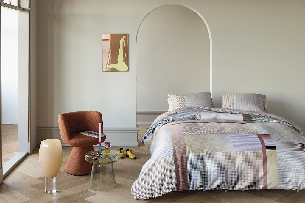 Overtrek Ferruccio van Kardol by Beddinghouse heeft een grafisch dessin met een dynamisch lijnenspel