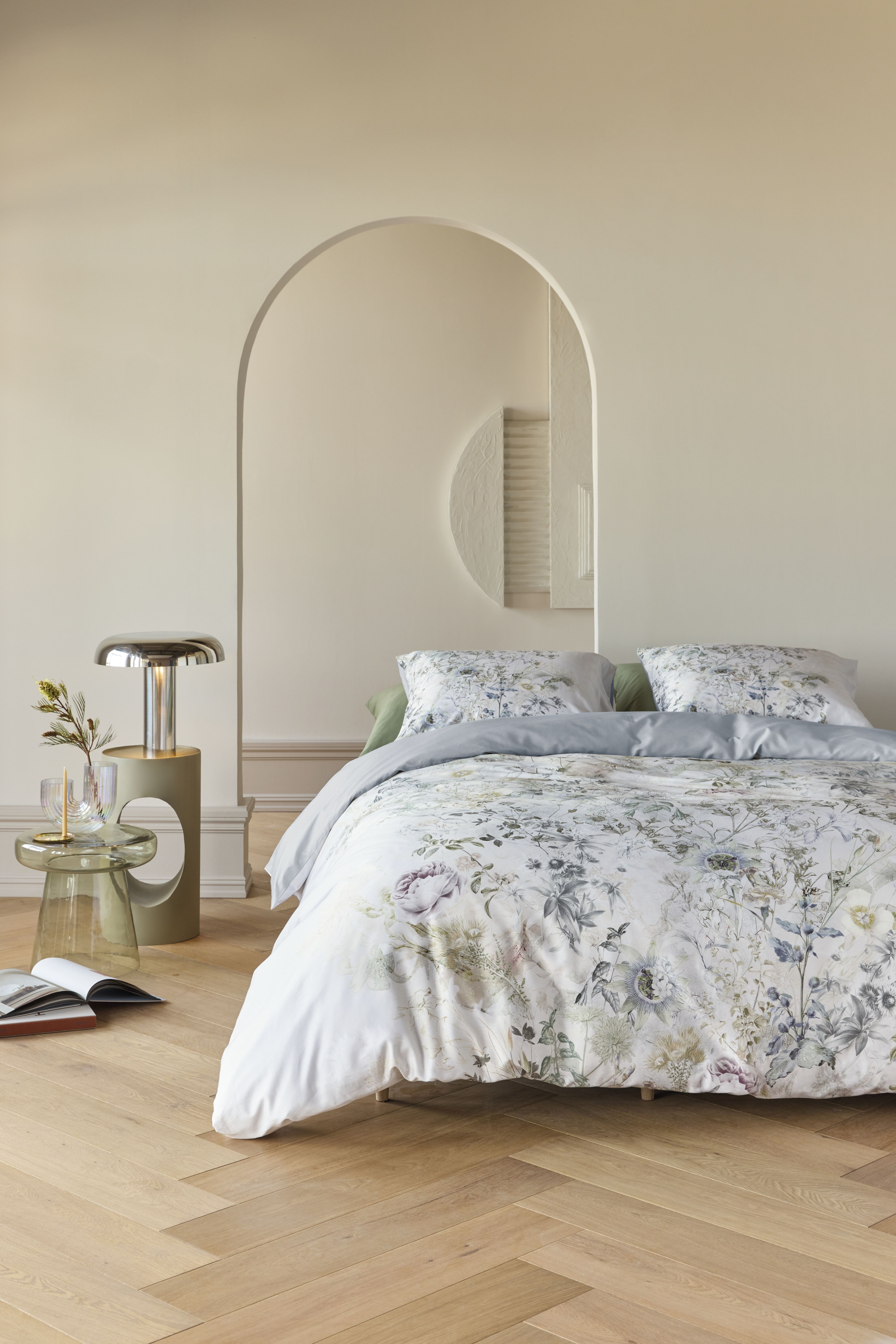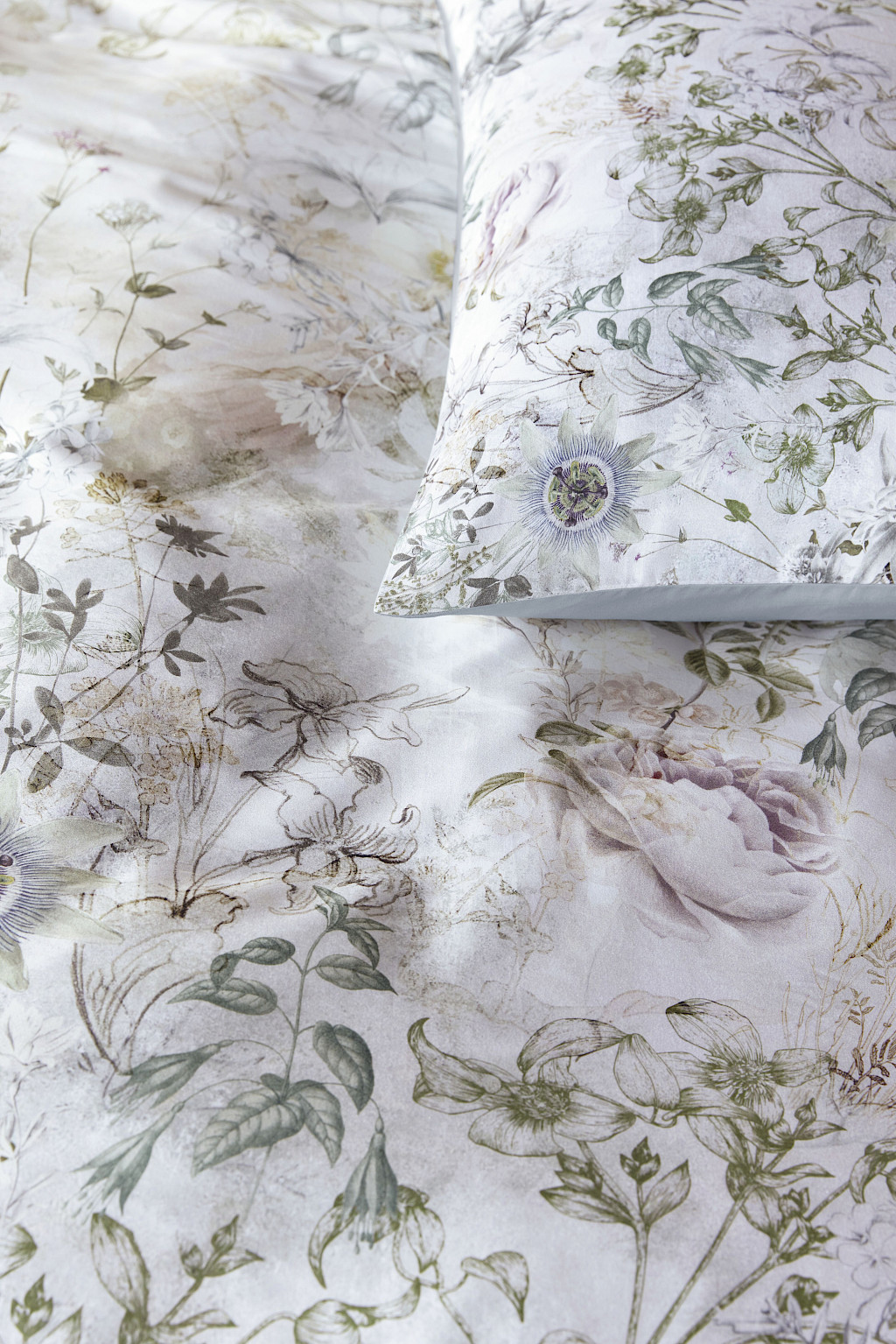 Dekbedovertrek The Retreat bevat een klassiek bloemendessin, samengesteld uit Rijksmuseum-prenten. De verticale opbouw en fijne tekeningen geven het ontwerp een kunstzinnige uitstraling. Vervaardigd van 100% katoensatijn, wat de kwaliteit en print versterkt. De effen achterzijde biedt contrast.