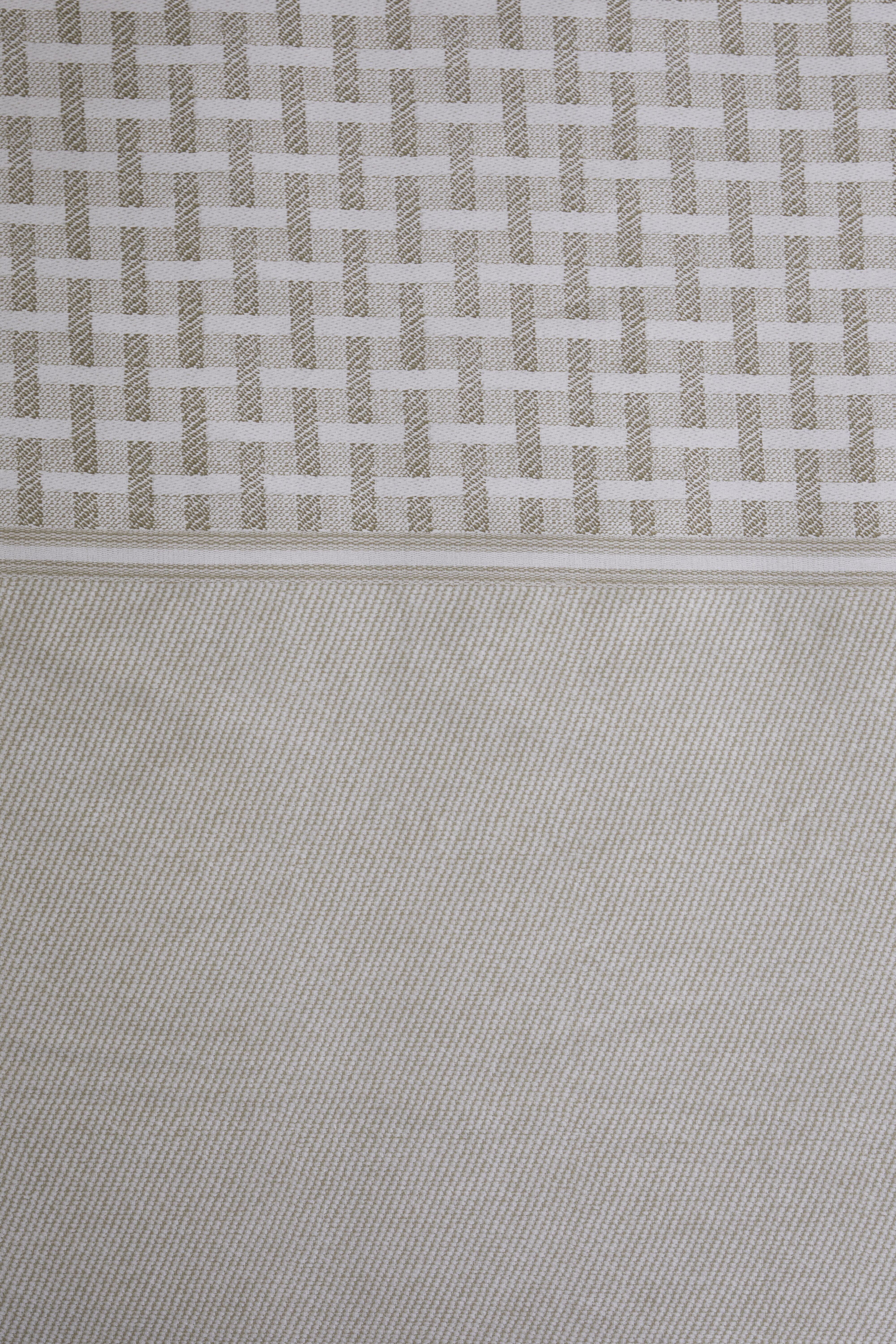 Dekbedovertrek Hayes van Rivièra Maison heeft een keperprint gecombineerd met een gevlochten baan bovenaan het overtrek