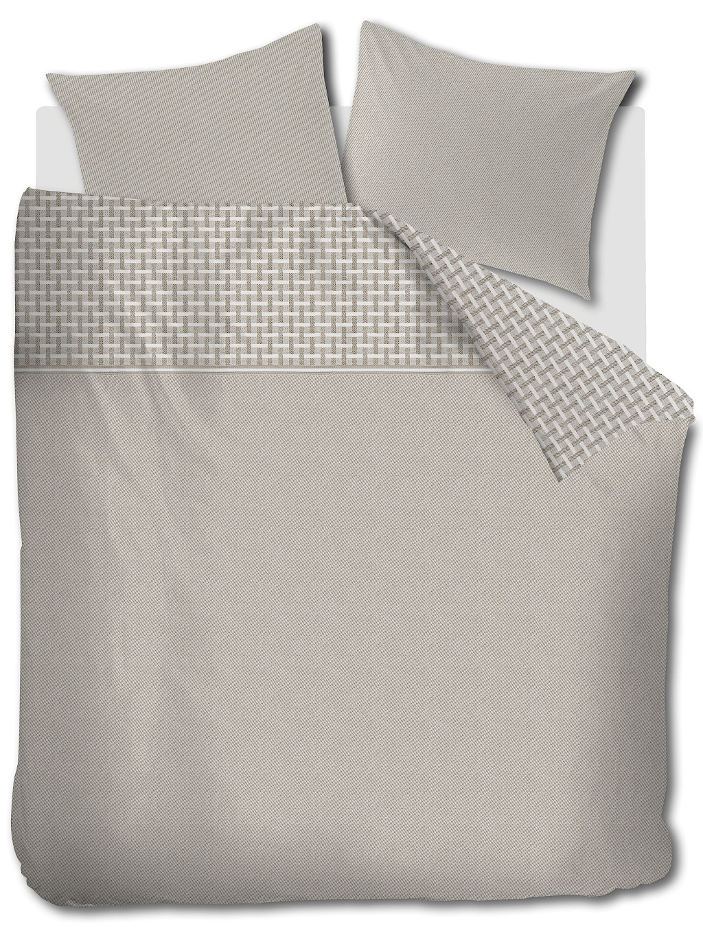 Dekbedovertrek Hayes van Rivièra Maison heeft een keperprint gecombineerd met een gevlochten baan bovenaan het overtrek. Tussen de lichte en donkere kleur zit een geprinte geweven band. Zowel de voor- als achterkant van het overtrek zijn hetzelfde.