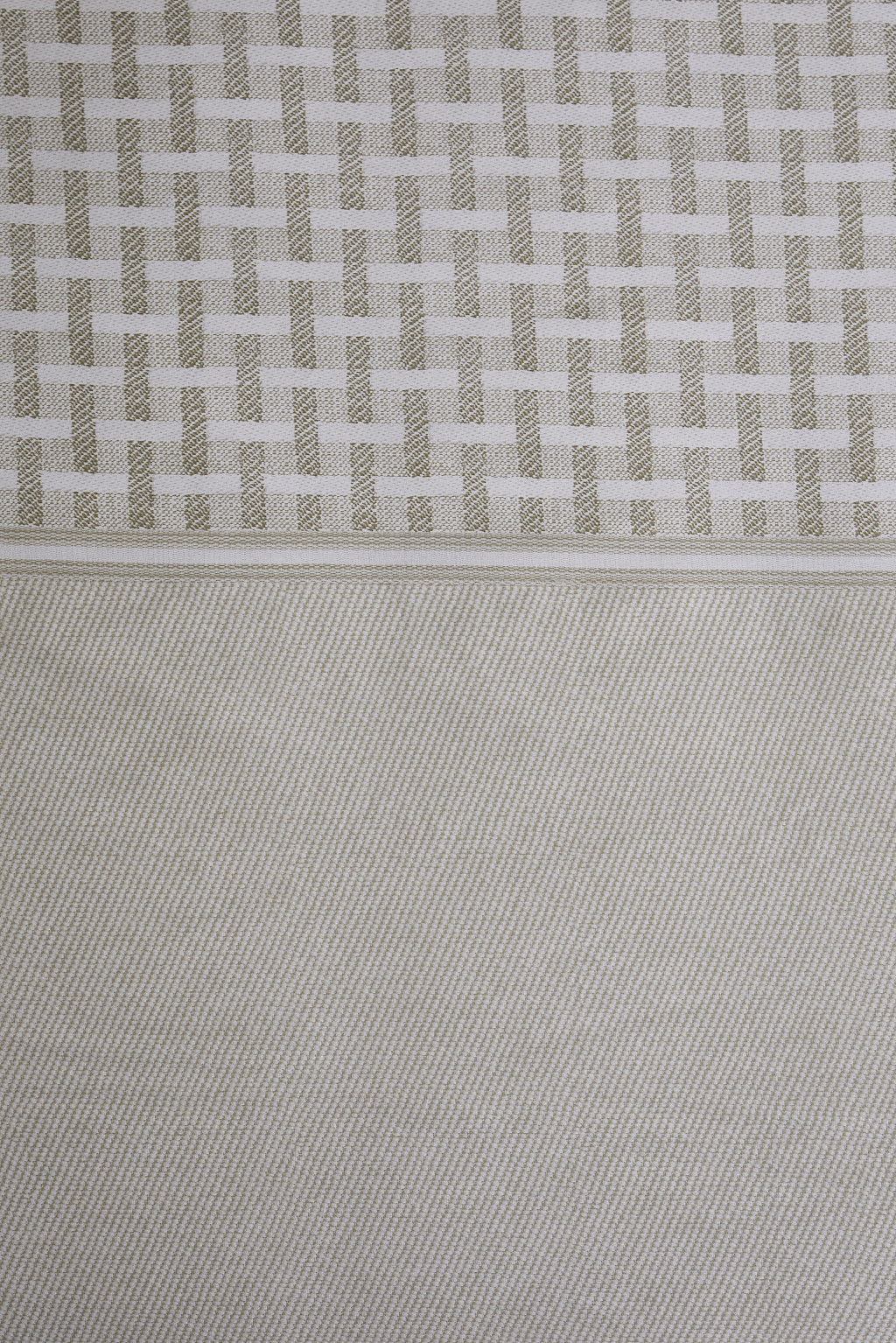 Dekbedovertrek Hayes van Rivièra Maison heeft een keperprint gecombineerd met een gevlochten baan bovenaan het overtrek