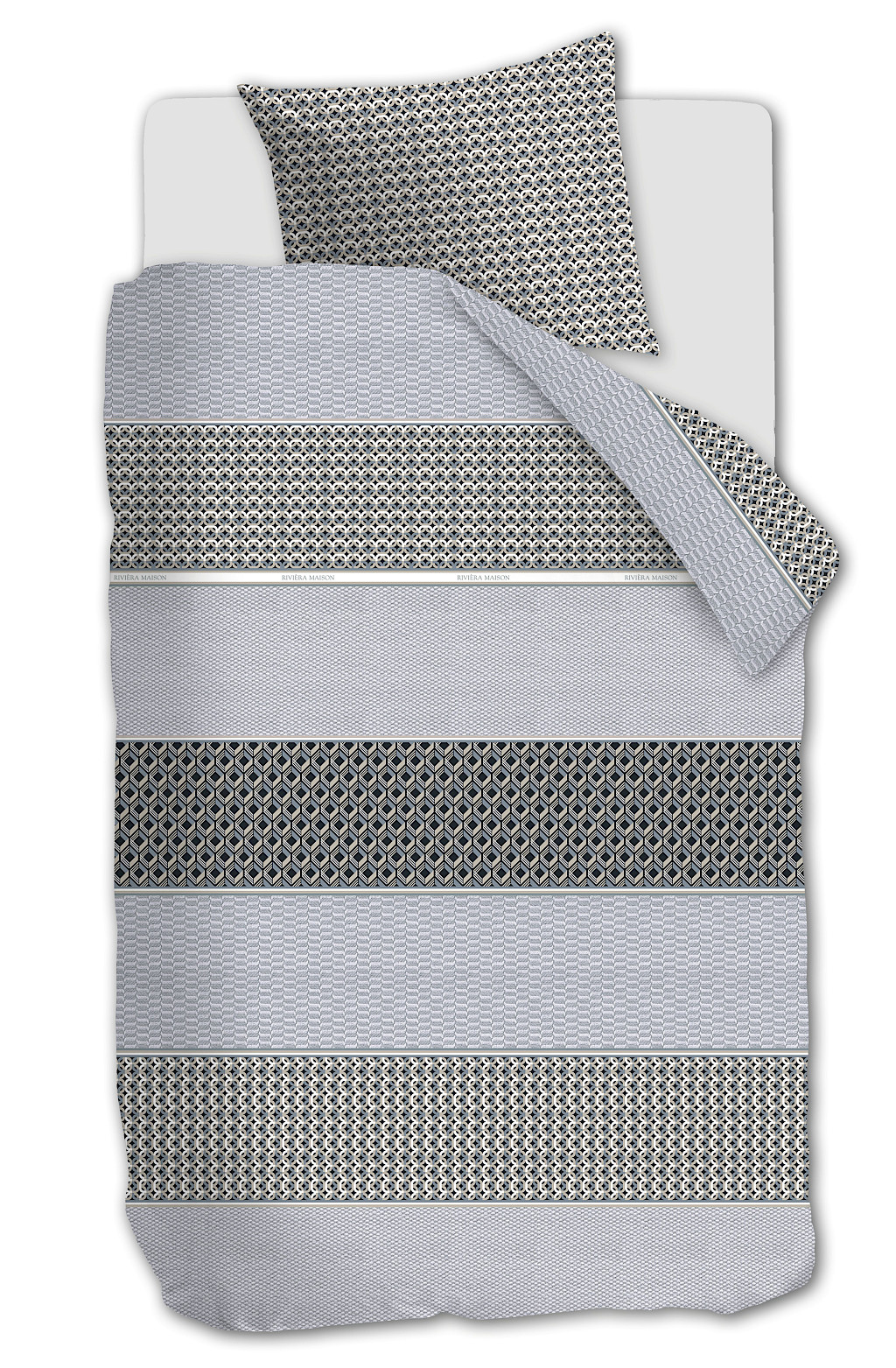 Dekbedovertrek Lawrence van Rivièra Maison heeft een print van een tijdloos banendessin, opgebouwd met verschillende weefmotieven en stofstructuren