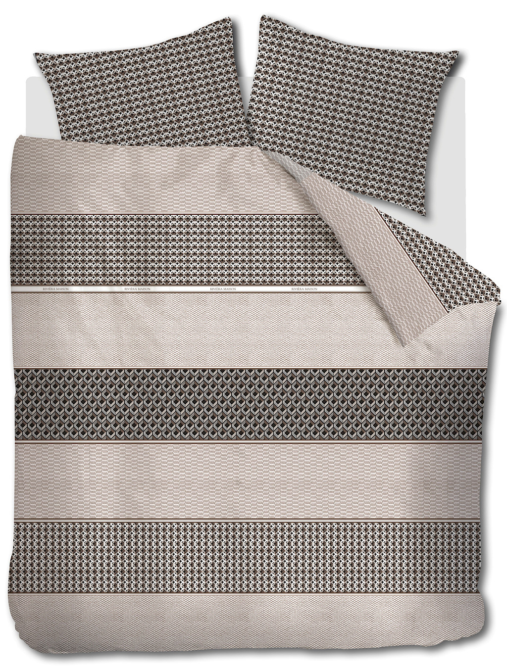 Dekbedovertrek Lawrence van Rivièra Maison heeft een print van een tijdloos banendessin, opgebouwd met verschillende weefmotieven en stofstructuren