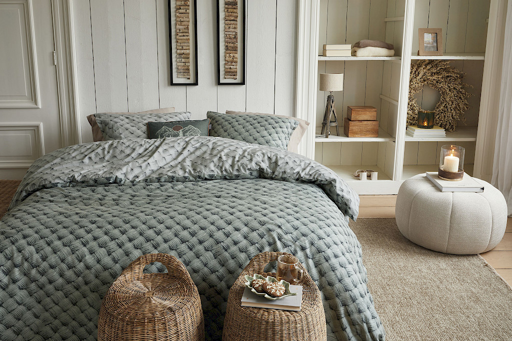 Dekbedovertrek Woven Wool van Rivièra Maison is gemaakt van 100% katoenflanel en heeft een allover-print van geweven wol. De voor-en achterkant wisselen in kleurtint. Dekbedovertrek Woven Wool is verkrijgbaar in verschillende kleuren.