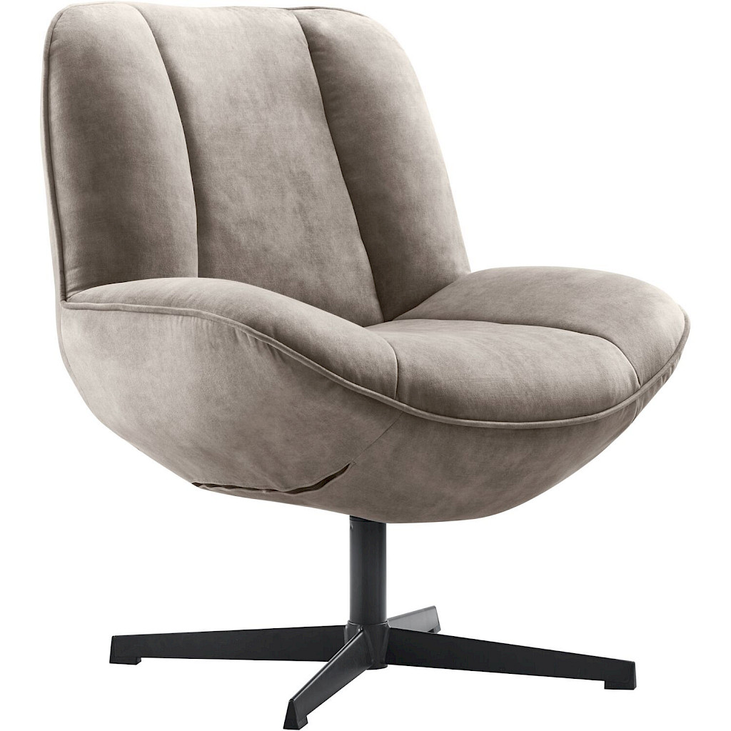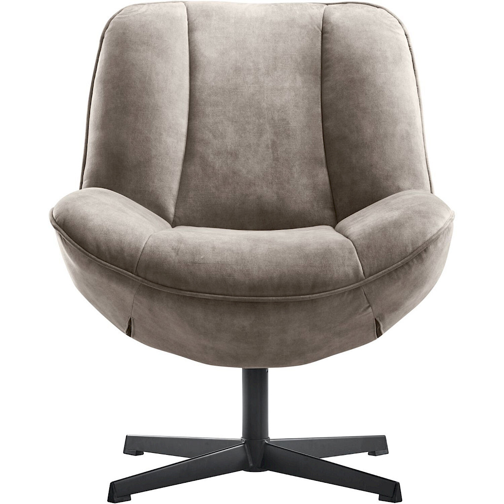 Fortenza is een compacte draaifauteuil met een ronde, vriendelijke vorm. De velvet stof in lichtgrijs met een beige ondertoon geeft de fauteuil een warme, chique uitstraling. Het decoratieve stiksel zorgt voor een subtiele touch en maakt het ontwerp net even verfijnder. De zachte glans van de stof voegt een elegant accent toe.