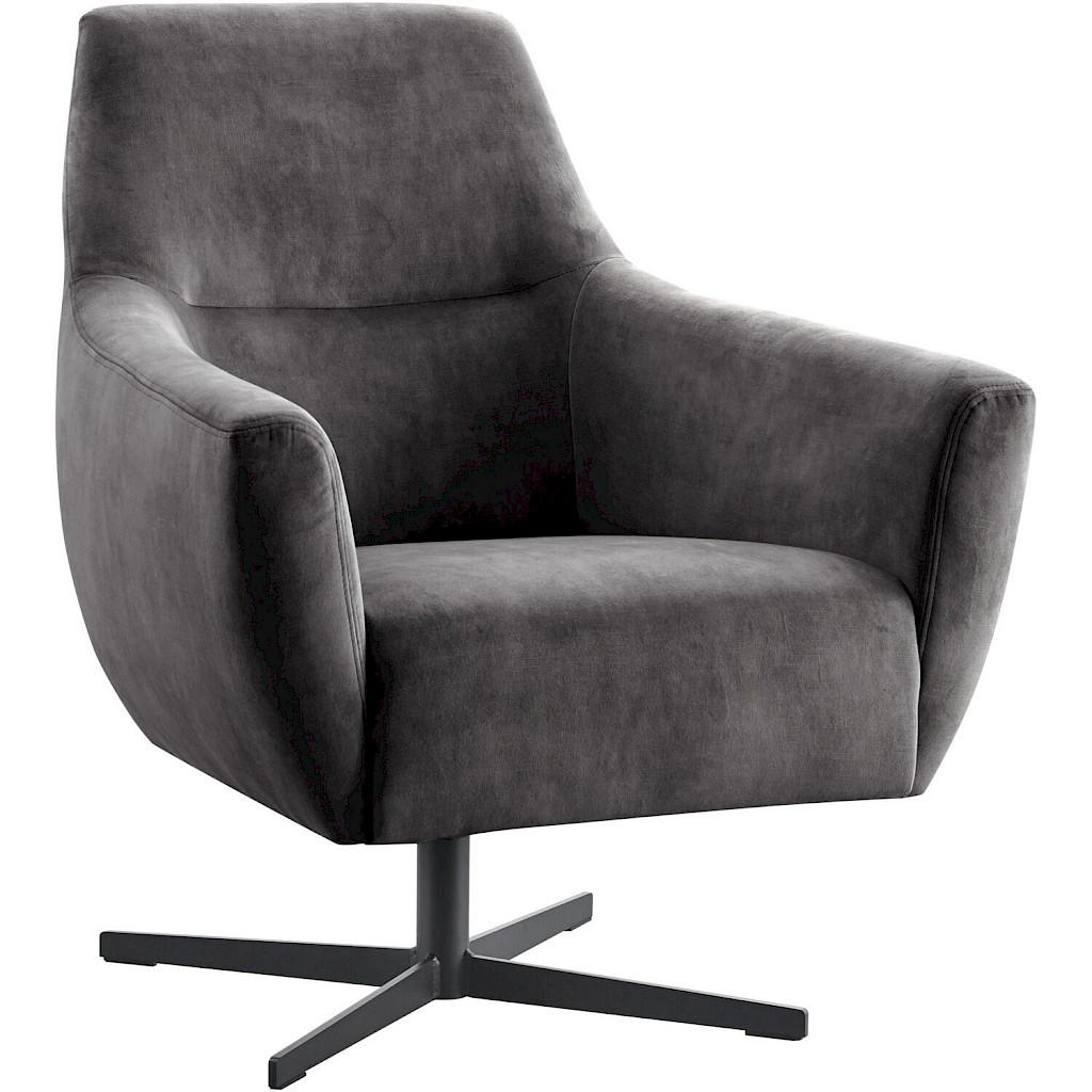Ontdek de Gudo fauteuil: een tijdloze combinatie van klassiek design en eigentijdse flair. Met zijn zachte bekleding van velvetstof in de kleur antraciet straalt deze draai fauteuil pure luxe uit. De fluweelachtige stof voelt niet alleen geweldig aan, maar reageert ook prachtig op licht dankzij de subtiele opstaande vezels die voor een speels effect zorgen. De verfijnde zwarte metalen 4-teenspoot en de discrete naad op de rug voegen een vleugje stijl toe aan het geheel.