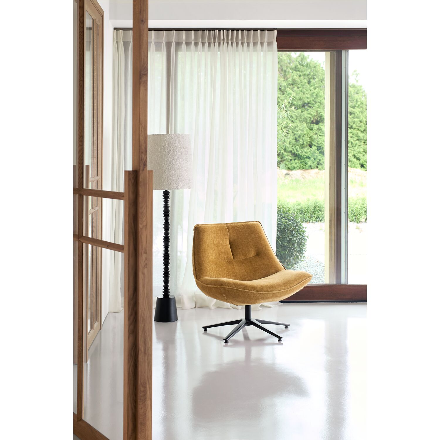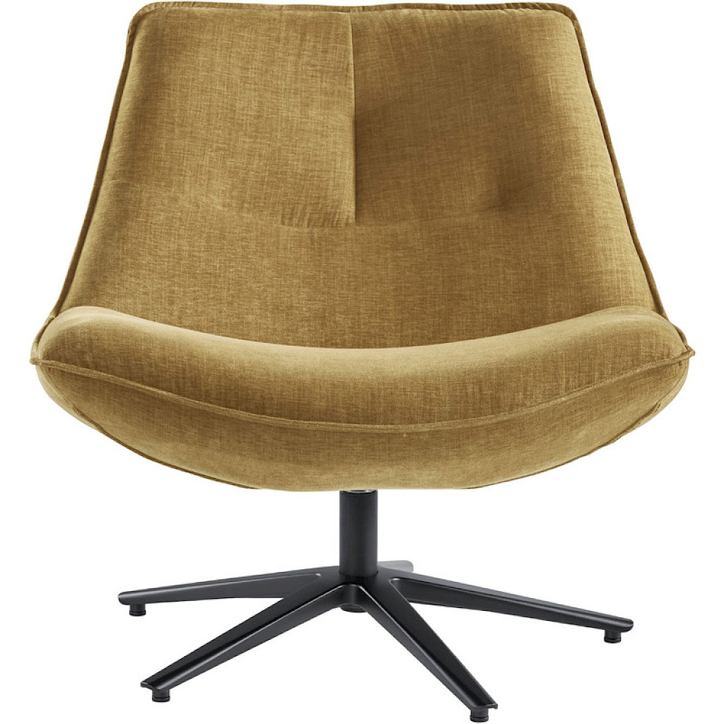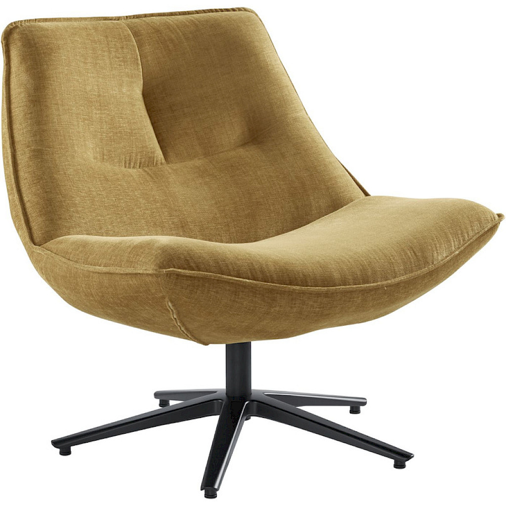 Deze draaifauteuil in een trendy okergele stof, brengt meteen kleur in je interieur. De fauteuil is uitgevoerd in de stof Home; een zachte weefstof die heerlijk aanvoelt en een rijke uitstraling heeft.