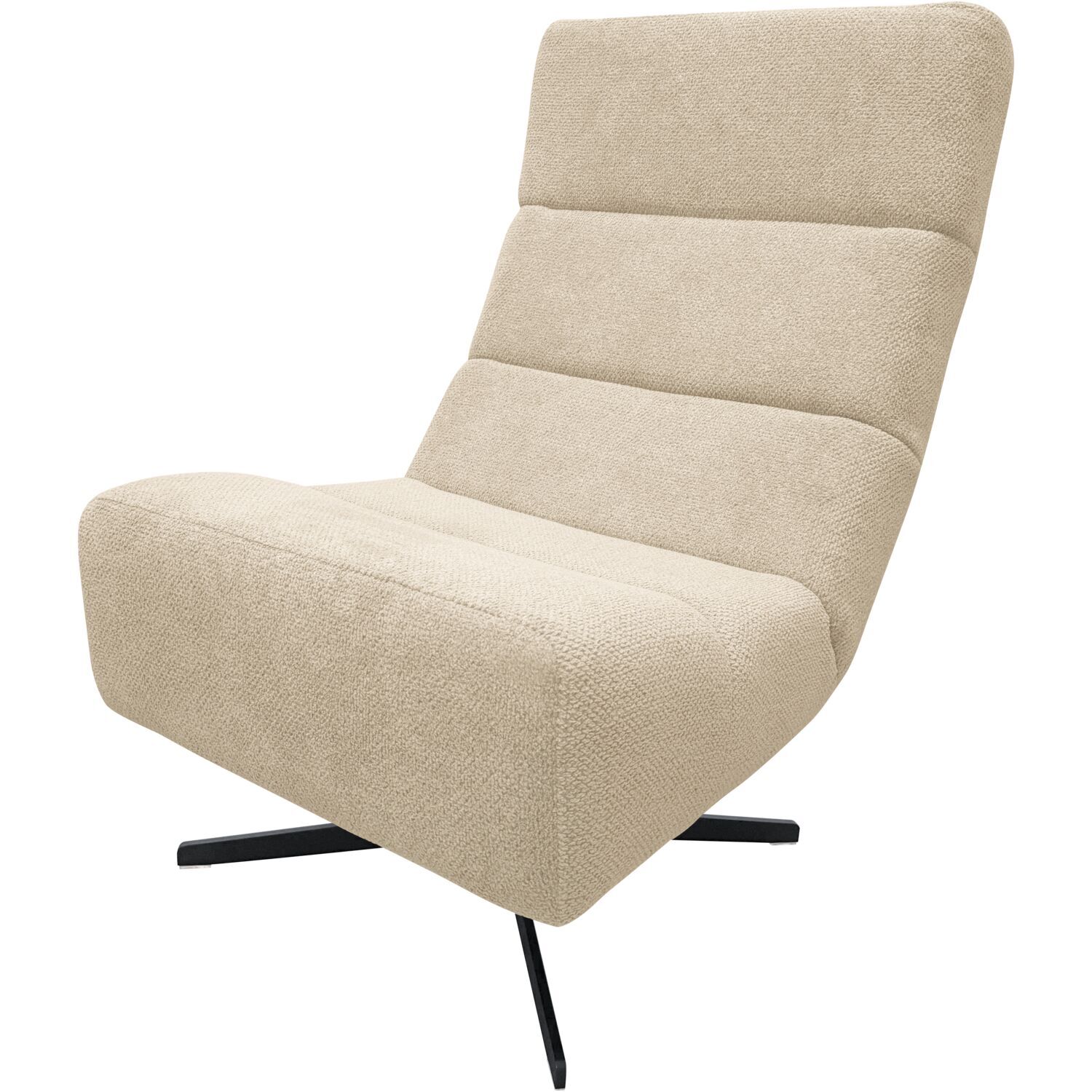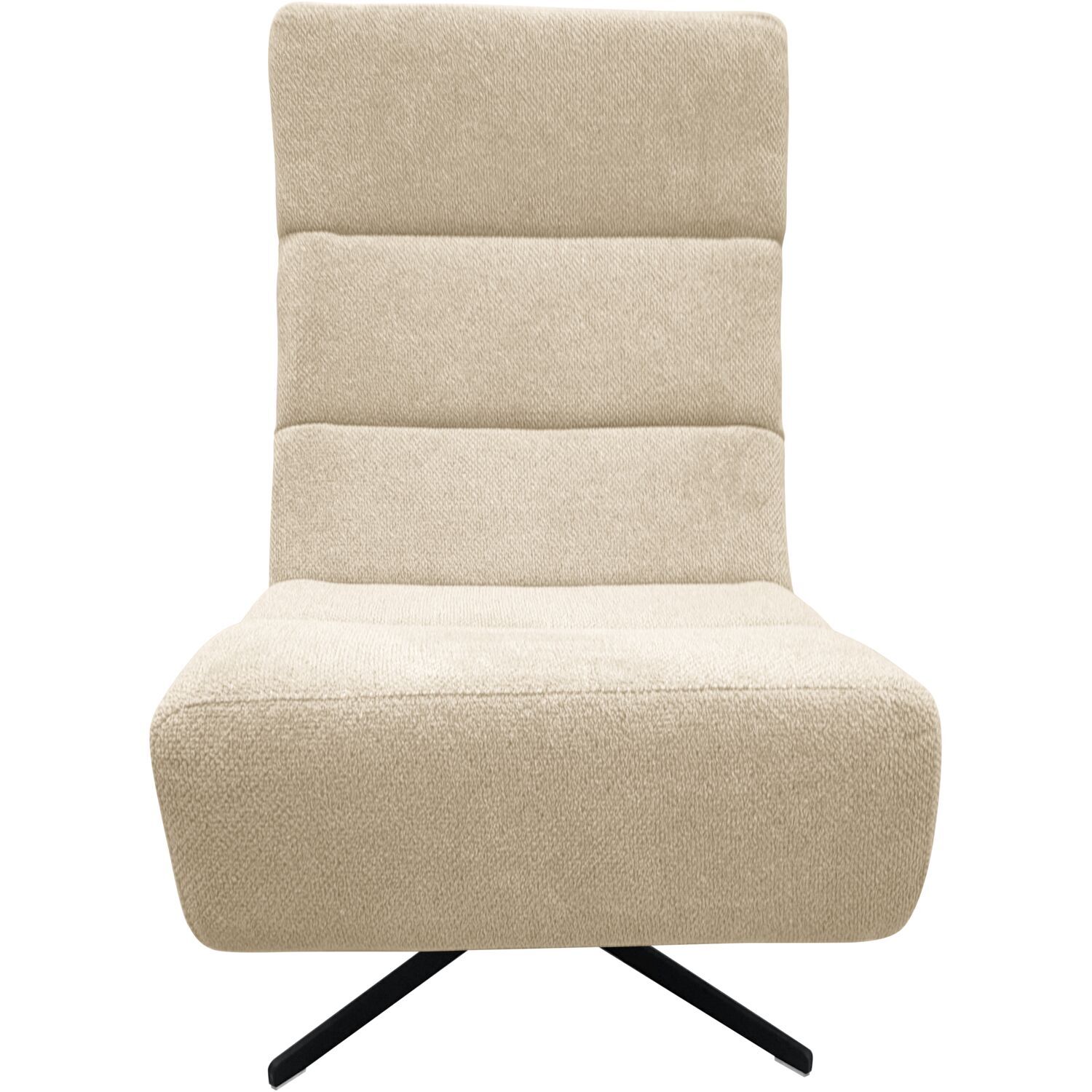 Novia is een strakke, lage fauteuil met een brede zitting en hoge rug. De lijnen zijn recht en modern, maar door de lichte rondingen oogt de stoel toch uitnodigend. Het horizontale stiksel in de rug zorgt voor een subtiel speels accent. Uitgevoerd in een ecru chenille weefstof. Deze sterke en slijtvaste stof voelt zacht en prettig aan en geeft de fauteuil een luxe uitstraling die perfect aansluit bij de huidige interieurtrends. Het zwarte metalen onderstel met 4-teens poot geeft de fauteuil een stoere en stabiele basis.