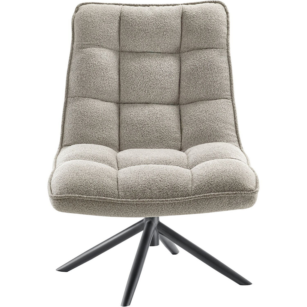 Draaifauteuil Parrano combineert een strak en tijdloos design met een zachte, uitnodigende uitstraling. De warmgrijze bouclé bekleding voelt aangenaam aan en geeft de stoel een subtiele elegantie. Deze tint heeft een vleugje beige, wat zorgt voor een warme uitstraling en makkelijk te combineren is met verschillende interieurstijlen. De verfijnde biesafwerking voegt een stijlvol detail toe en accentueert de vorm van de fauteuil, waardoor het design nog beter tot zijn recht komt.