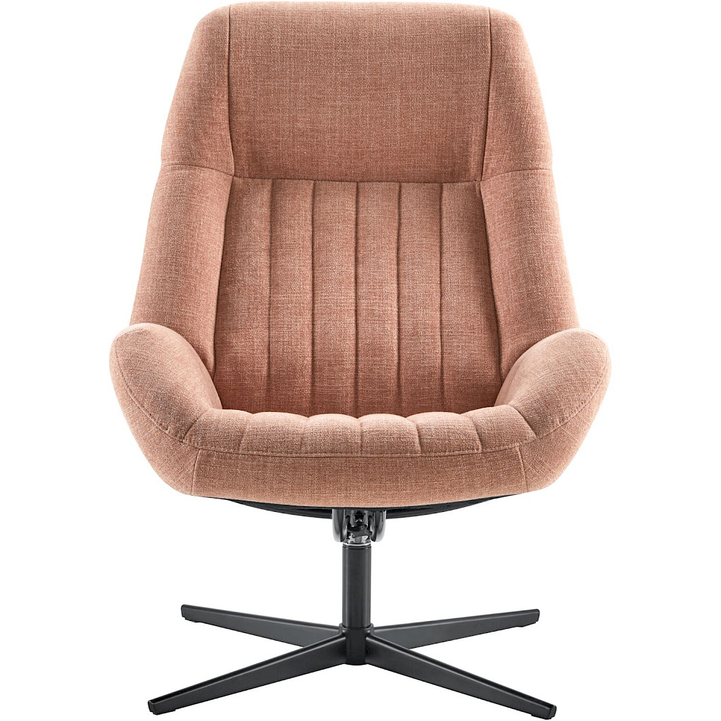 Draaifauteuil Tirona is door haar compacte vorm en elegante stiksels een echt eye-catcher in jouw woonkamer. Deze fauteuil heeft een uitstekend zitcomfort en door een lichte druk op de rug te geven is het rug gedeelte te verstellen. De zachte roze stof en zwarte draaivoet geven Tirona een trendy look.