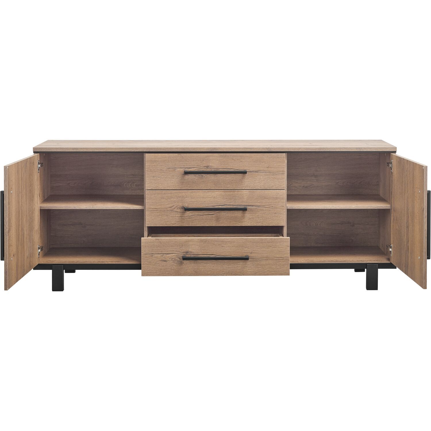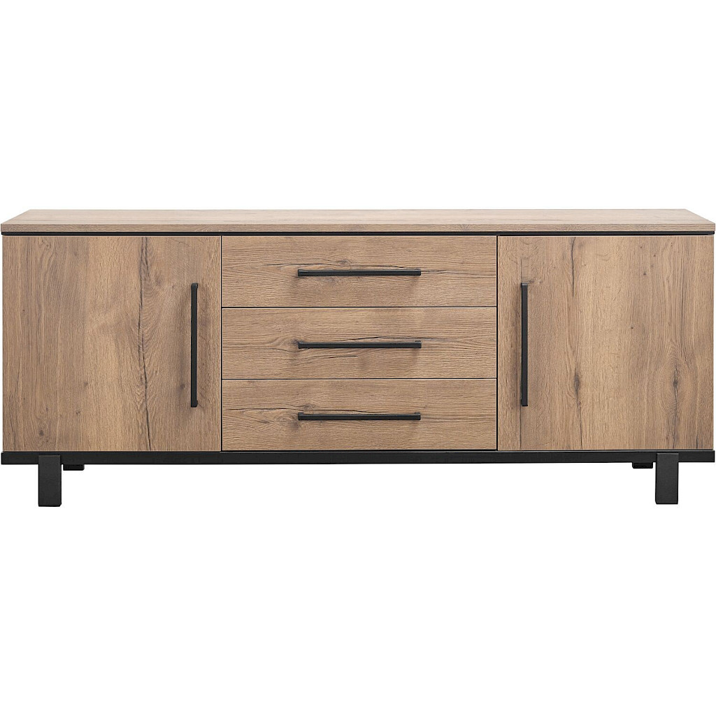 Het Adanti dressoir is een trendy kast met een industriële uitstraling. De warme, lichtbruine kleur en het gepoedercoate zwart metalen frame zorgen voor een unieke sfeer in je woonkamer. Deze robuuste kast is afgewerkt met een melamine toplaag. De toplaag ziet eruit als echt hout en heeft zelfs een licht reliëf, waardoor het ook aanvoelt als echt hout. Het materiaal is kras-, slijt- en stootvast, eenvoudig in onderhoud en gebruiksvriendelijk. Hierdoor is de kast ook bijzonder geschikt voor gezinnen met (jonge) kinderen.