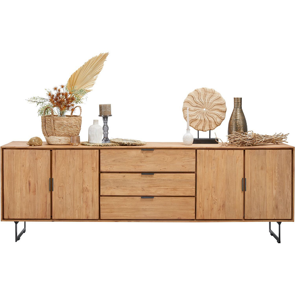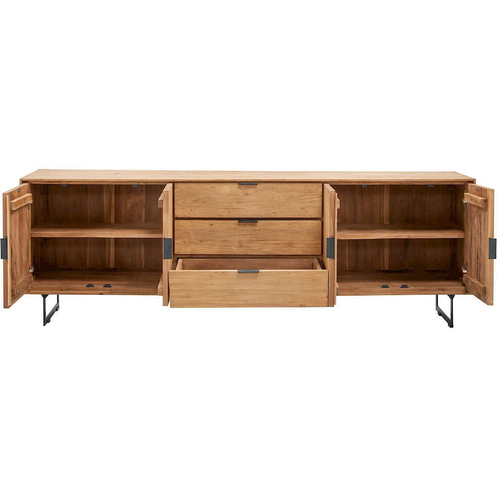 Zie je dit dressoir helemaal staan in jouw woonkamer, maar is het net een maatje te groot? Geen probleem, het is ook verkrijgbaar met 3 deuren en 3 laden en een breedte van 195 cm.