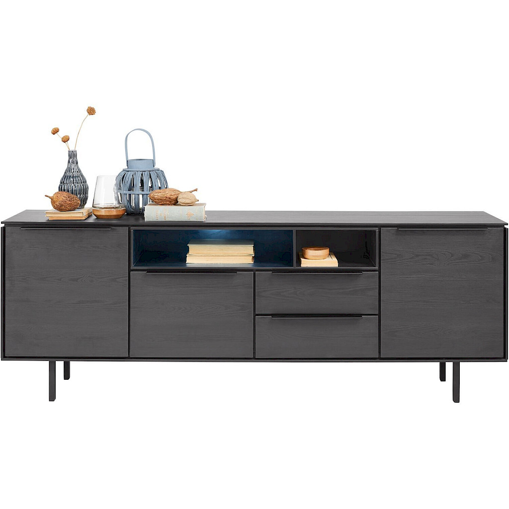 Met een hoogte van 65 cm en een breedte van 180 cm, biedt het dressoir veel opbergruimte. De open vakken zijn ideaal om leuke accessoires in te leggen of zetten. De open vakken kunnen (tegen meerprijs) worden voorzien van led-verlichting, voor extra sfeer.