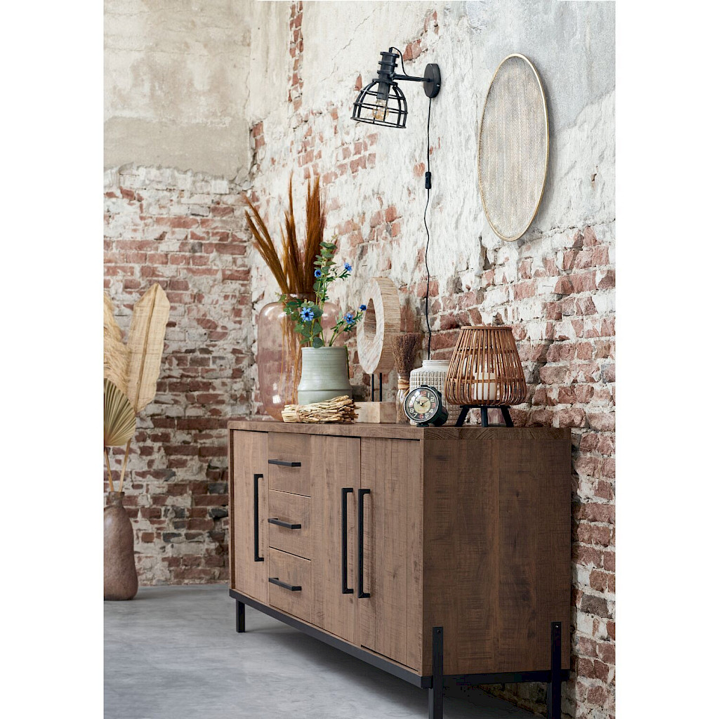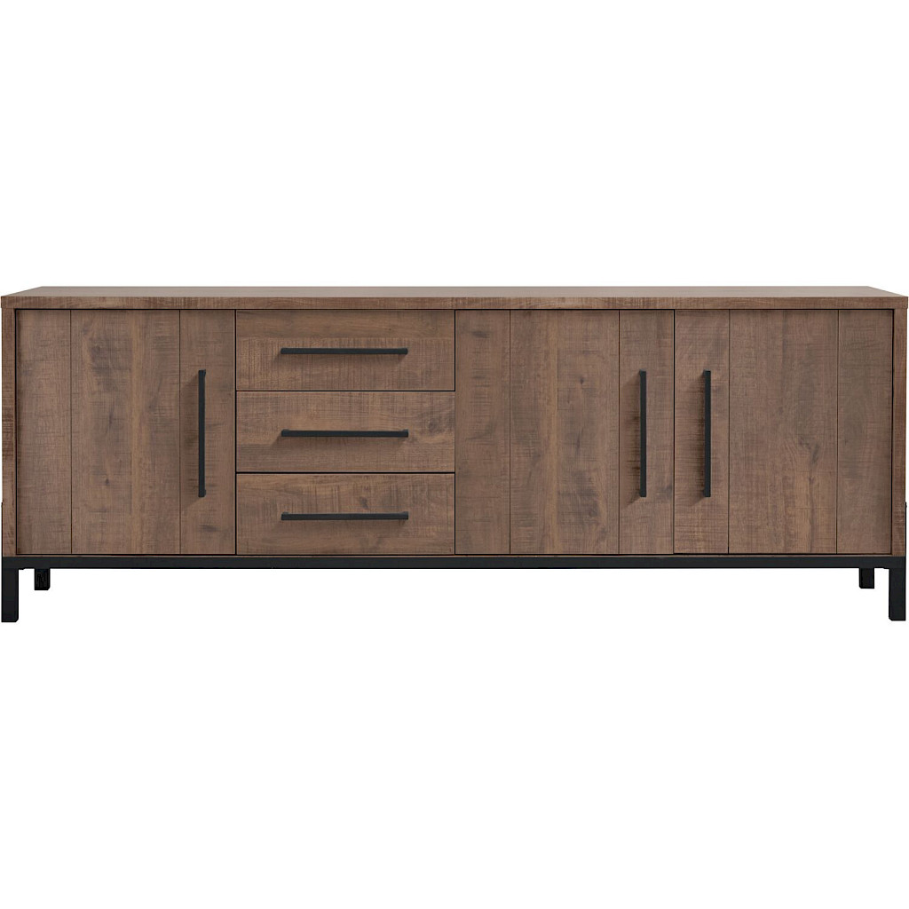 Dit stoere dressoir uit de woonserie Ricardi is voorzien van een melamine toplaag met een donkerbruine, mangohouten look. Hierdoor is deze slijtvast en geniet je tegelijkertijd van de uitstraling van echt hout.
