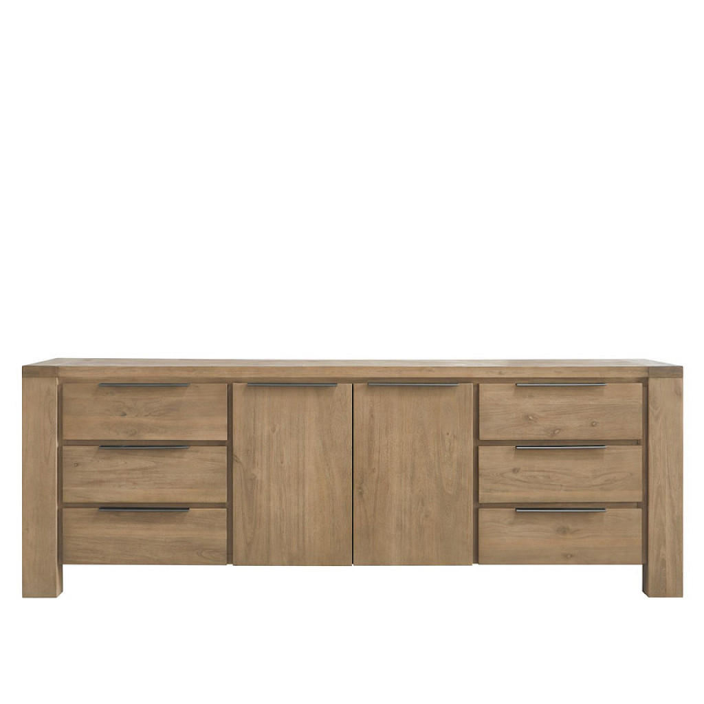 Uitgevoerd in acacia smoked brown met 2 deuren en 6 laden