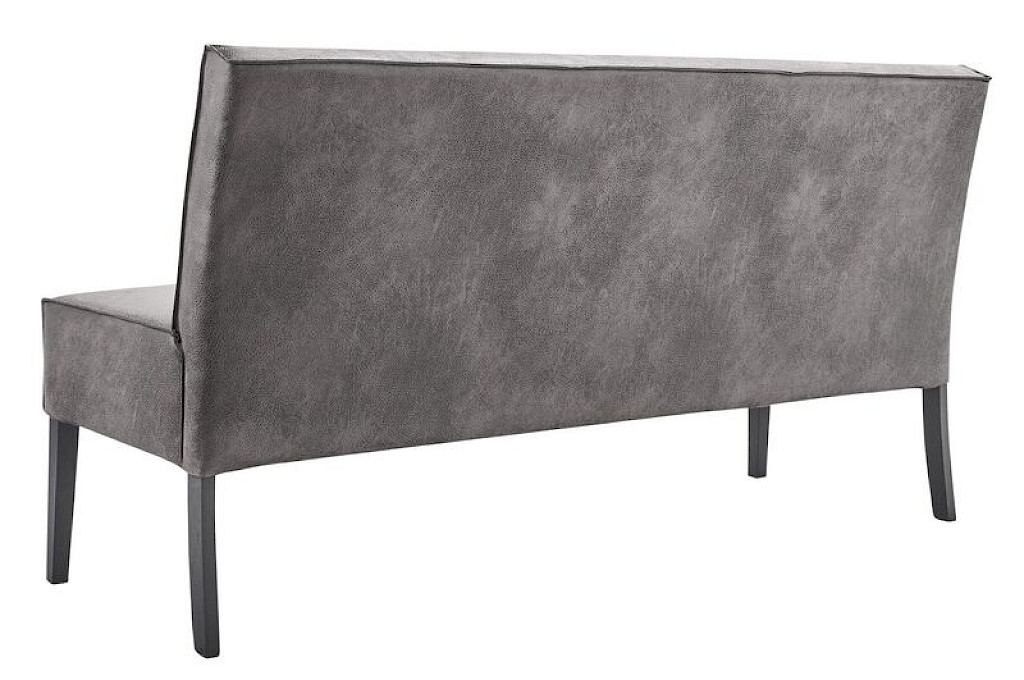 Eetbank Avanza heeft een krachtige, moderne uitstraling. De bank is bekleed met microleder in een stijlvolle donkergrijze kleur. Microleder is een samengestelde bekleding van leder en textiel. Het combineert de luxe uitstraling van leer met het comfort en onderhoudsgemak van stof. De zwarte houten poten en de open vlindernaad zorgen voor een strak geheel dat moeiteloos past in een eigentijds interieur. De poten worden los geleverd en zijn eenvoudig zelf te monteren.