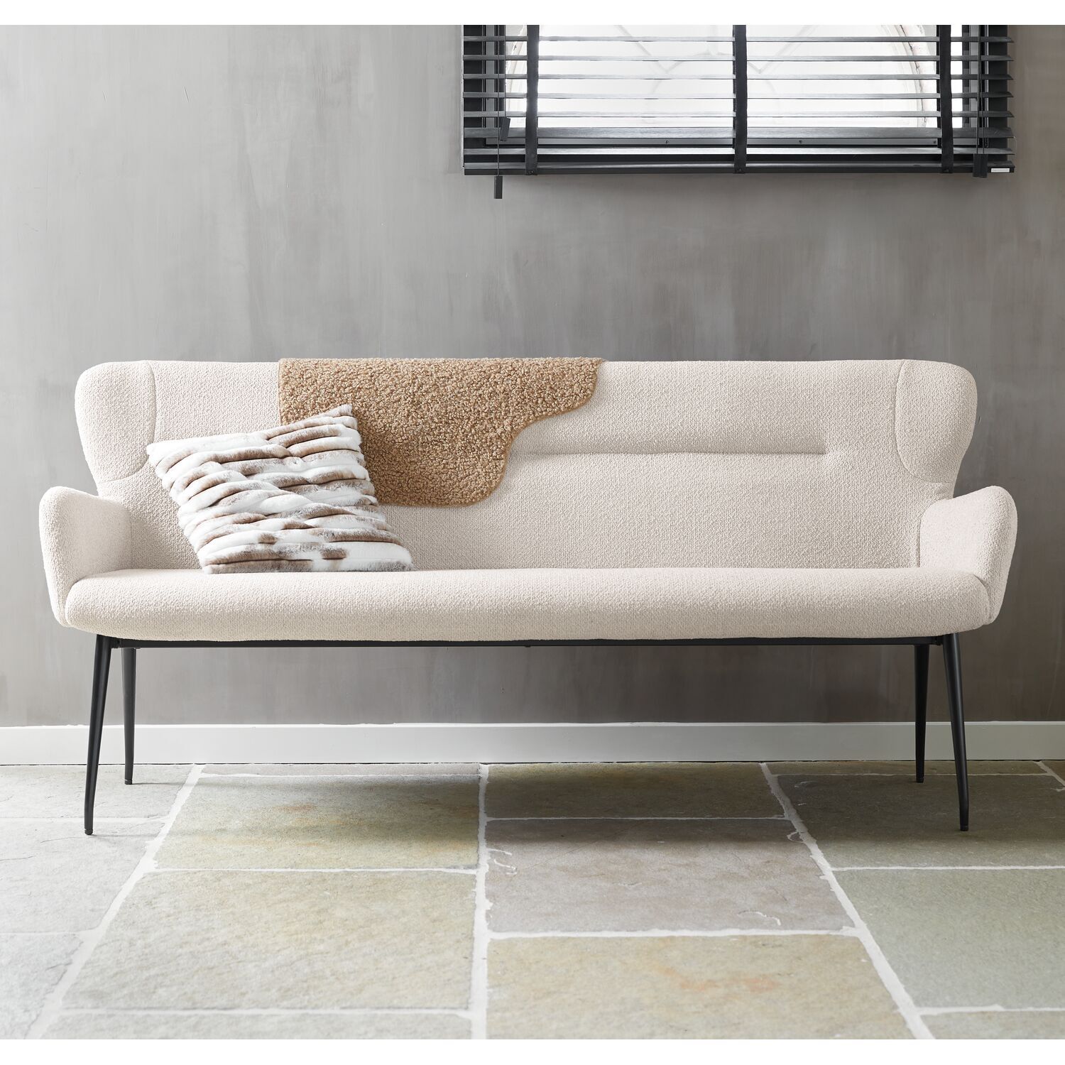 De zitting van de Lembo is uitgevoerd met polyetherschuim, een materiaal dat bekend staat om zijn praktische en comfortabele eigenschappen. Het biedt een prettige basis voor dagelijks gebruik en behoudt goed zijn vorm. Zo kun je ontspannen genieten, met de wetenschap dat deze eetbank is ontworpen met een maximale belasting van 120 kg per zitplaats. De slanke, zwart metalen poten geven het geheel daarnaast een moderne en luchtige uitstraling. Met een breedte van 190 cm biedt deze bank voldoende ruimte voor meerdere personen.
