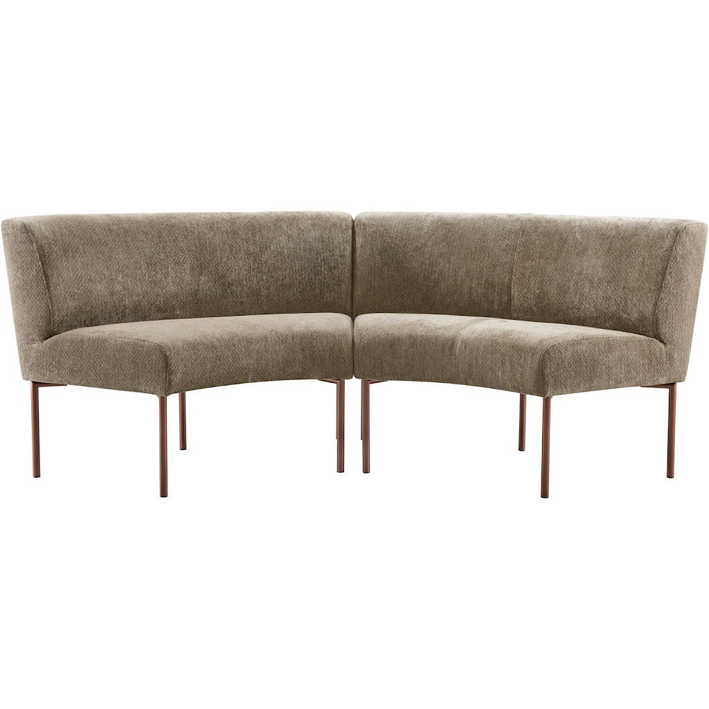 Deze eetbank bank is uitgevoerd met een hoogwaardige weefstof in een neutrale grijs-beige tint, die heerlijk zacht aanvoelt en een subtiel 3D-effect heeft. Dit geeft de bank een volumineuze en luxe uitstraling. Dankzij het ronde hoekontwerp en het tweedelige systeem kan de bank eenvoudig aan elkaar gekoppeld worden, waardoor hij perfect aansluit bij ronde eettafels. Het zwarte metalen onderstel geeft de bank een stijlvolle en eigentijdse uitstraling.