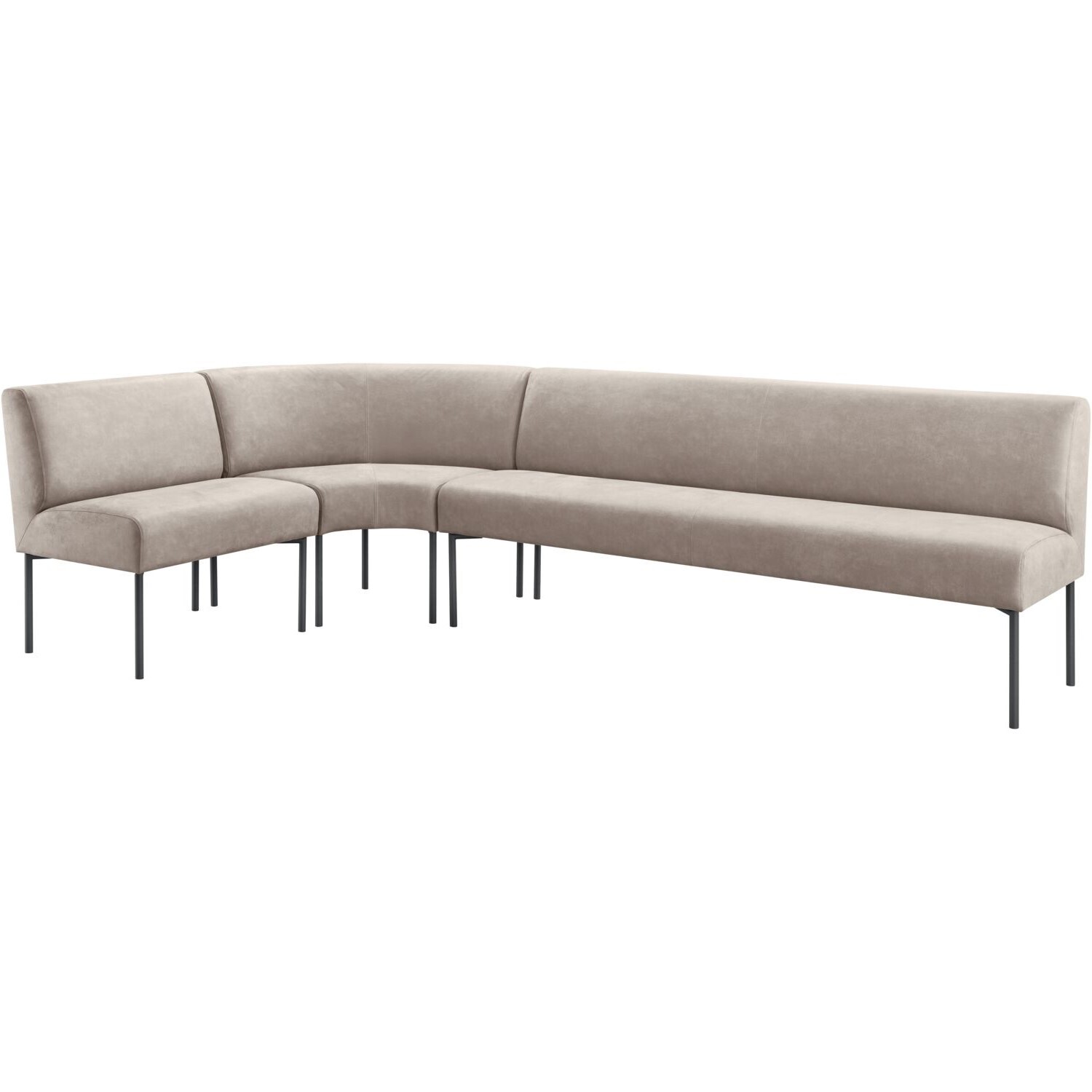 Rechtesalon 80 + hoek rond + rechtesalon 200, uitgevoerd in microleder bull 60-lightgrey met pocketvering en polyether in de zitting en zwart metalen poten.