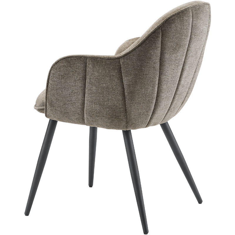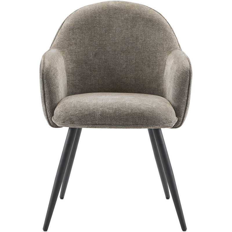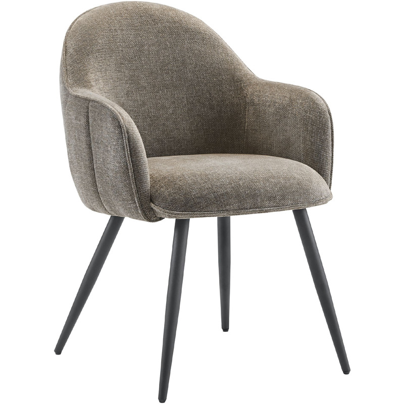 De stoelen hebben een uitgesproken uitstraling en zijn leverbaar in 4 verschillende kleuren. Deze stof geeft de armstoel een zachte touch en een vintage uitstraling. De mooie stiknaden en de ronde lijnen springen direct in het oog. Dit alles gecombineerd met de stoere metalen poten maakt het een speels model.