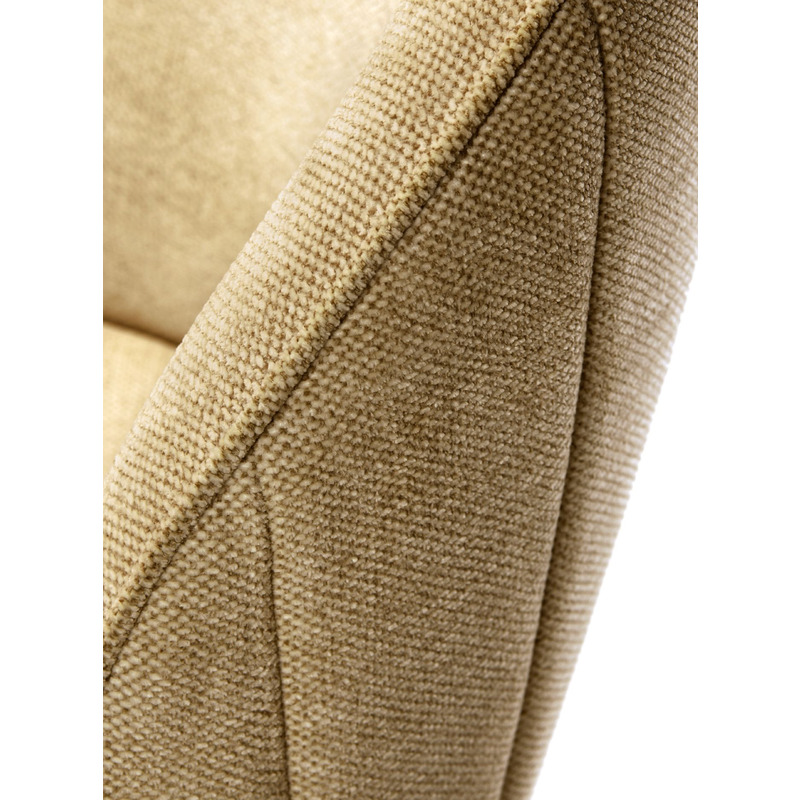 De stoelen hebben een uitgesproken uitstraling en zijn leverbaar in 4 verschillende kleuren. Deze stof geeft de armstoel een zachte touch en een vintage uitstraling. De mooie stiknaden en de ronde lijnen springen direct in het oog. Dit alles gecombineerd met de stoere metalen poten maakt het een speels model.
